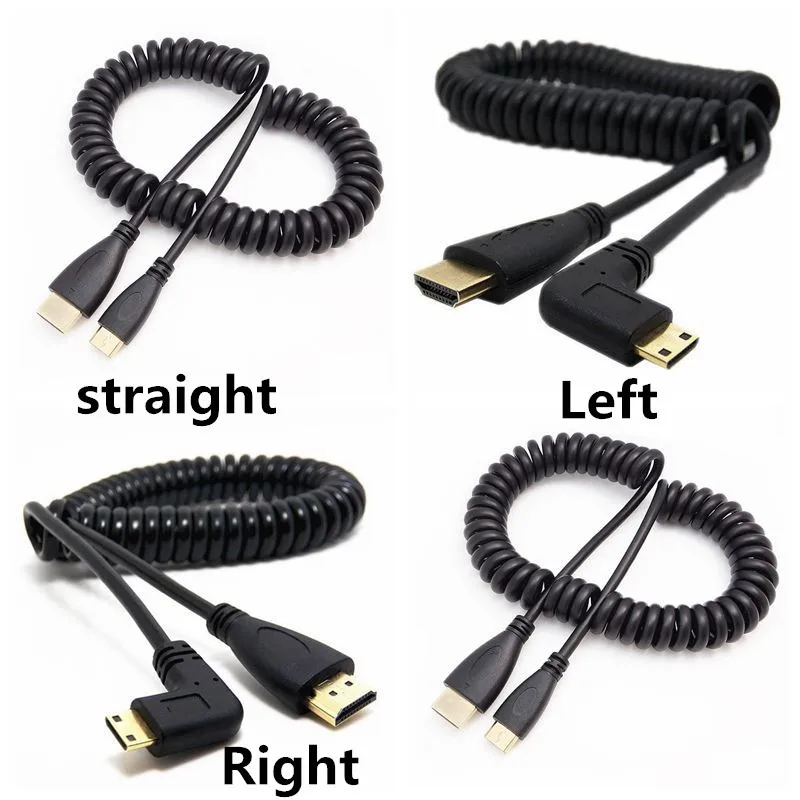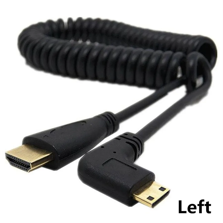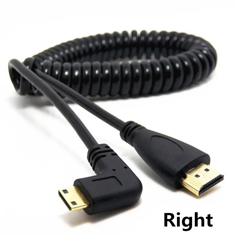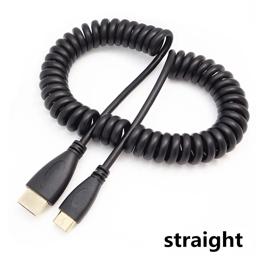 Comprar Mini cable de extensión de resorte HDTV HD, ángulo de 90 grados, izquierda/derecha/recta, macho a rizo, Flexible