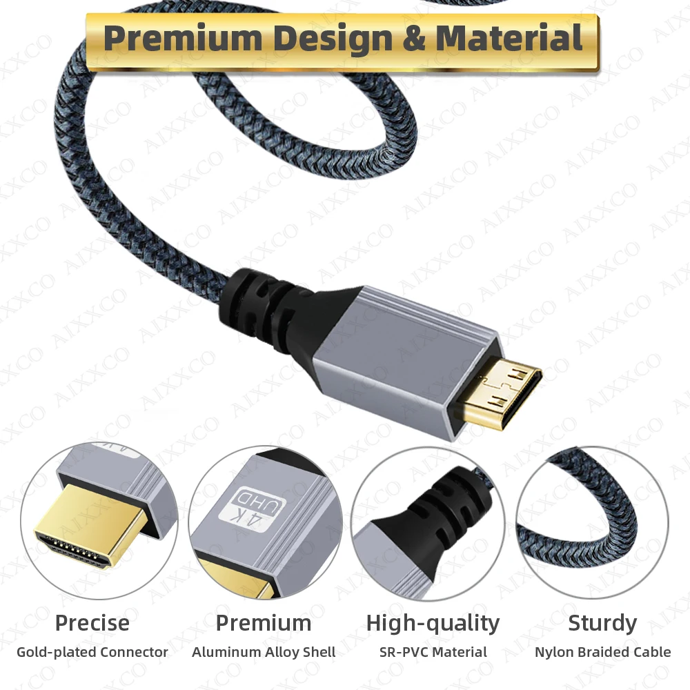 Mini Cable HDMI-Compatible a HDMI-Compatible 2,0 de alta velocidad, 4K, 60HZ, 1080P, 3D, para tableta, videocámara, pantalla de cámara, adaptador de Cable