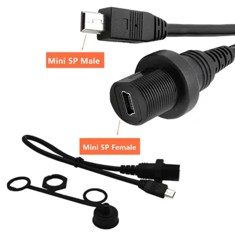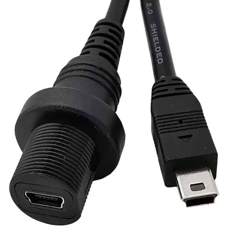 USB2.0 mini 5 pines macho a hembra AUX Cable de extensión de montaje en panel empotrado para salpicadero de motocicleta de coche, camión, barco; cable de extensión mini USB,