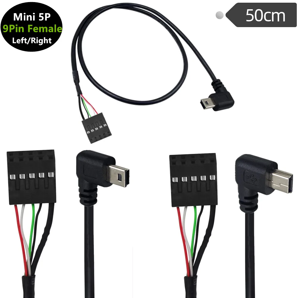 50CM USB 2,0 Mini 5 pines macho a 9 pines hembra 2,54 USB encabezado PCB Cable de placa base;