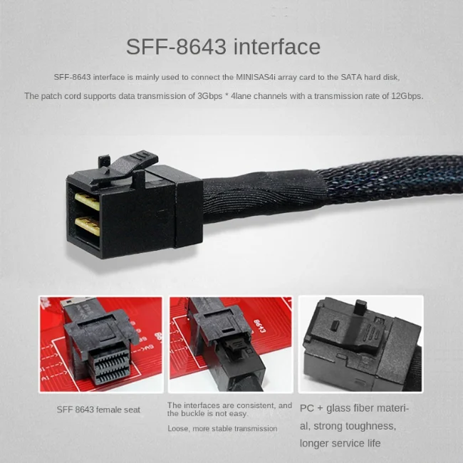 Comprar Mini Cable SAS HD para disco duro de ordenador, placa base de servidor, 0,5 m, 1m, SFF-8643, SFF 8643 a 8643