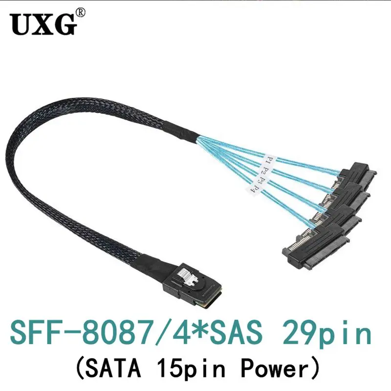 Comprar Mini Cable SAS SFF 8087 a 4 SFF -8482, Cable de datos de disco duro de alimentación grande de 4 pines y 15 Pines, SFF-8087 Host a 4 SAS 29Pin SFF8482