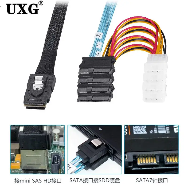 Comprar Mini Cable SAS SFF 8087 a 4 SFF -8482, Cable de datos de disco duro de potencia grande de 4 pines y 15 Pines, SFF-8087, servidor a 4 SAS 29Pin SFF8482