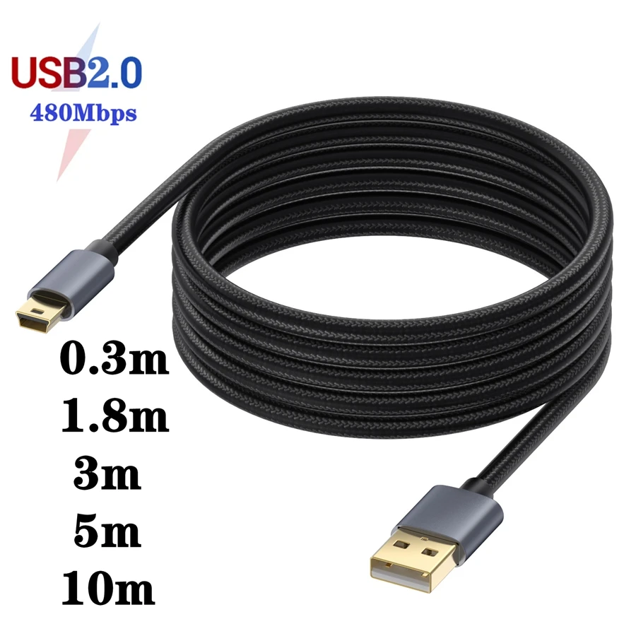 Comprar Mini Cable USB de 10m, 5m, 3m, 0,3 m, Mini USB 2,0 a USB, Cable cargador de datos rápido para reproductor MP3 MP4, GPS para coche, cámara Digital HDD Mini USB