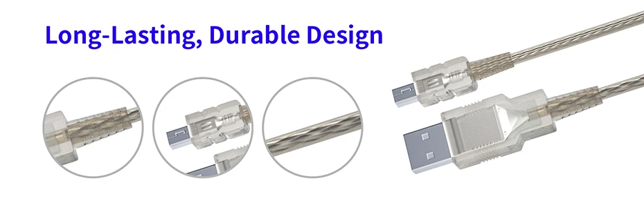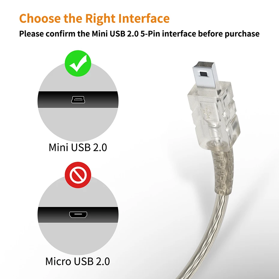 Cable USB 2.0 A-Male a Mini-B de alta velocidad de 19 CM y 7,5 pulgadas