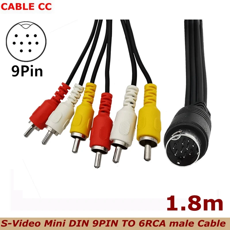 Comprar Mini Cable de vídeo y Audio de empresa para decodificador, equipo de monitoreo, pantalla, proyector, receptor, s-video, DIN, 9 pines a 6RCA, 1,8 m