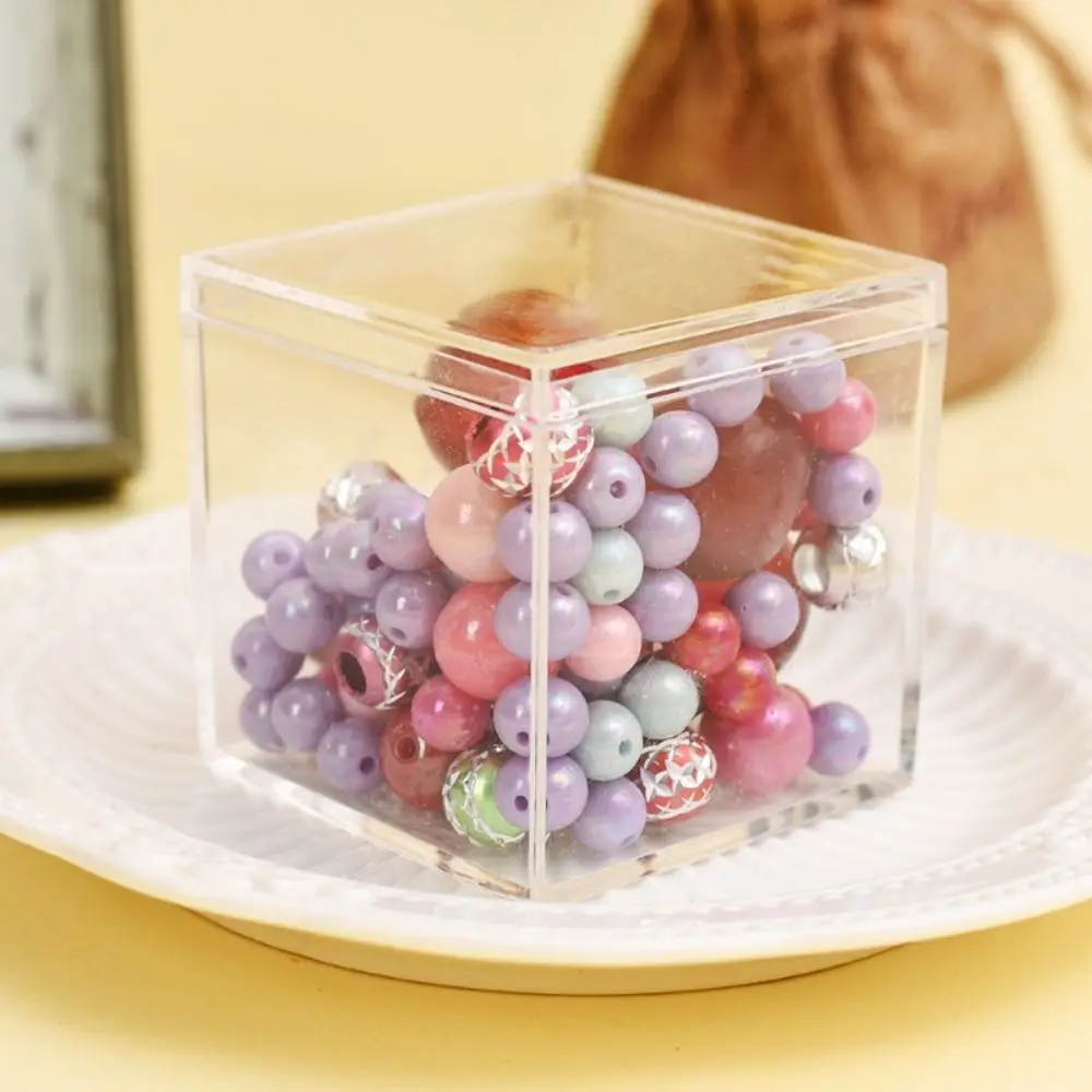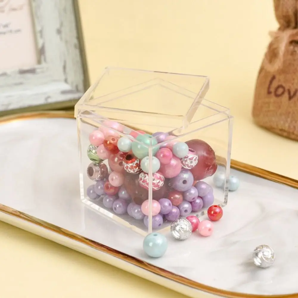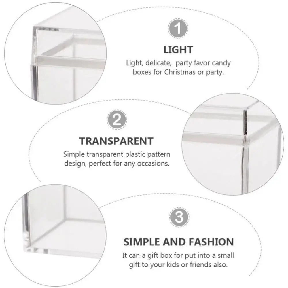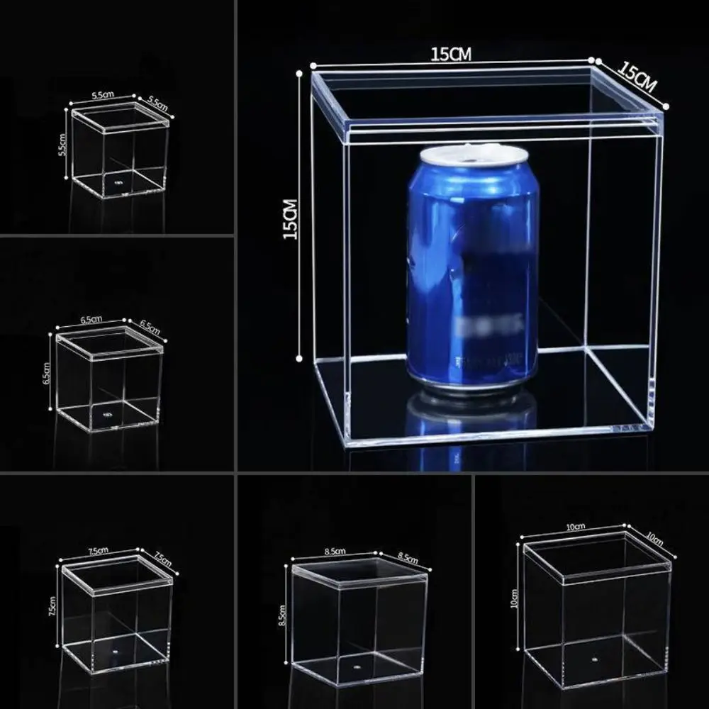 Comprar Mini cajas acrílicas transparentes con cubierta, caja de embalaje cuadrada, escaparate de protección, contenedor de almacenamiento de dulces y alimentos a prueba de polvo