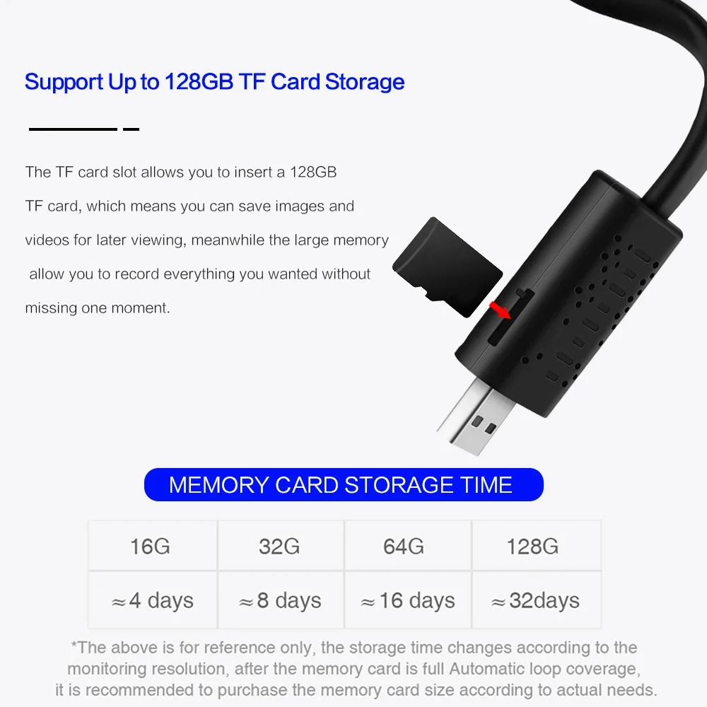 5.Vídeo de alta definición en tiempo real, alertas push activadas por movimiento, función de visualización remota, grabación en bucle de 24 horas alimentada por USB.
