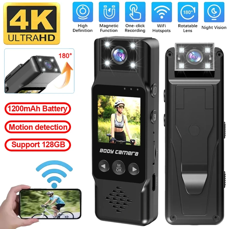 Comprar Mini cámara L13 HD 4K WiFi 180 ° Grabador de vídeo Digital DV deportivo giratorio, cámara portátil usada en el cuerpo, videocámara de visión nocturna IR