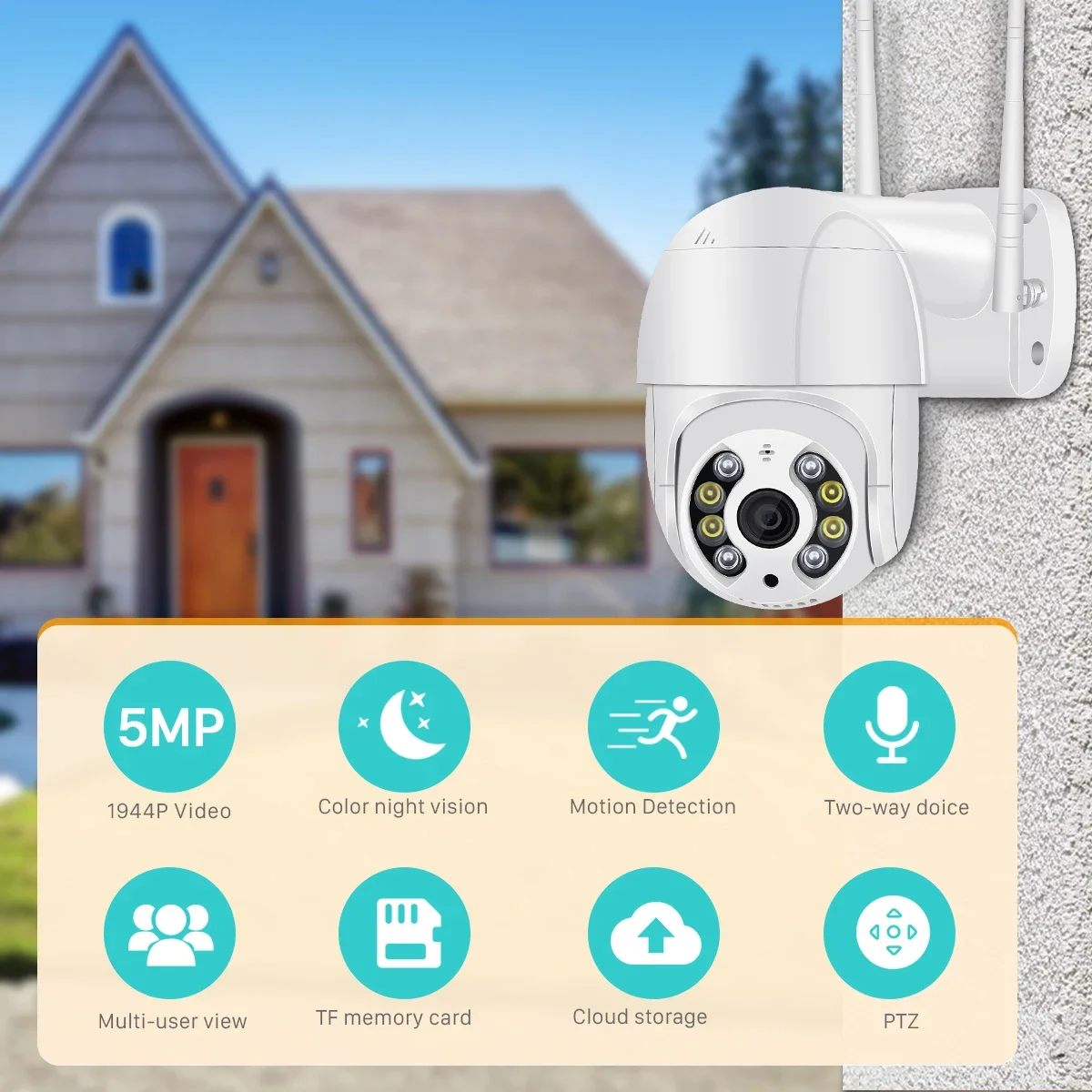 Experience crystal-clear imagery with the 4K Mini PTZ Wifi Camera, offering a stunning 5MP resolution for detailed surveillance.