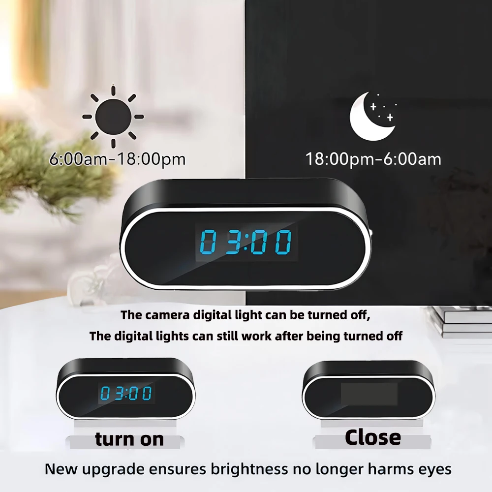 Reloj de cámara inalámbrico: esta cámara parece un reloj normal que puede indicarle la hora.La lente de la cámara está debajo de una pantalla suave, por lo que nadie lo notará.Sirve como cámaras de vigilancia en oficinas, hogares y automóviles.Con esta cámara de reloj, nunca perderás ningún detalle que surja en la habitación.