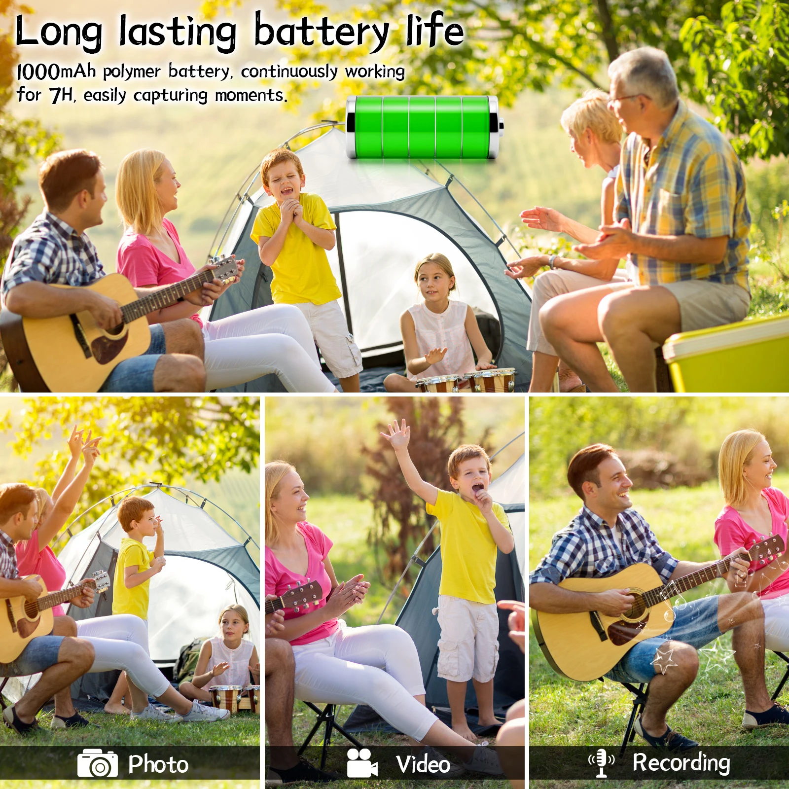 ➧Equipado con una batería recargable de 1000 mAh, puede proporcionar hasta 8 horas de grabación.