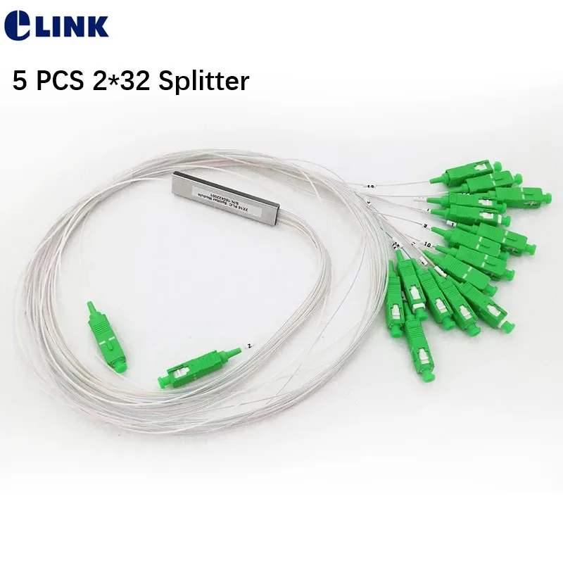 Comprar Mini carcasa divisora PLC de 2x16, cable blanco SC/1mtr APC, acoplador de fibra óptica de 2 A 16, tipo tubo de acero de 0,9mm, envío gratis, 5 piezas