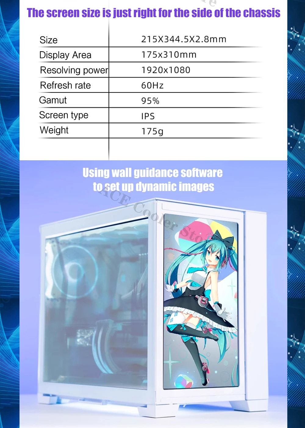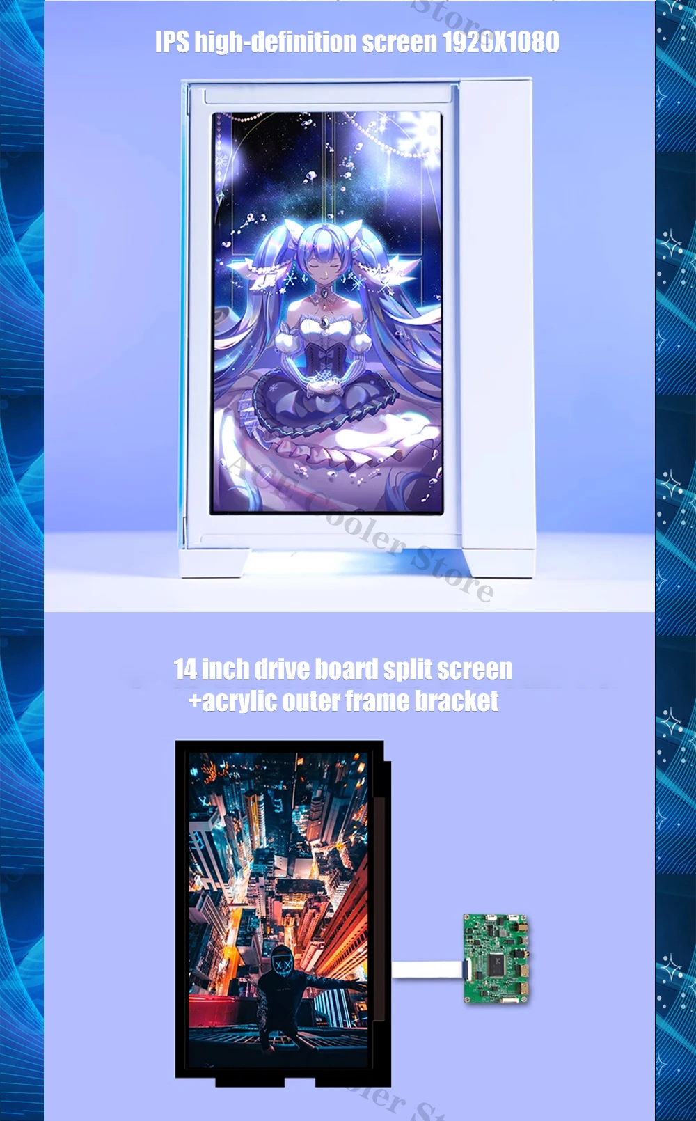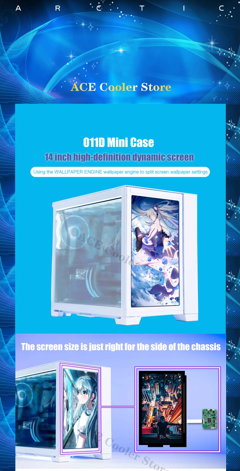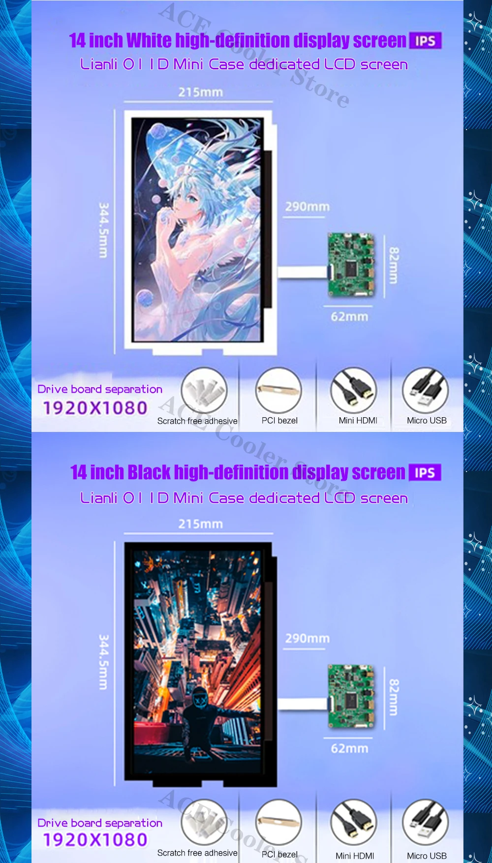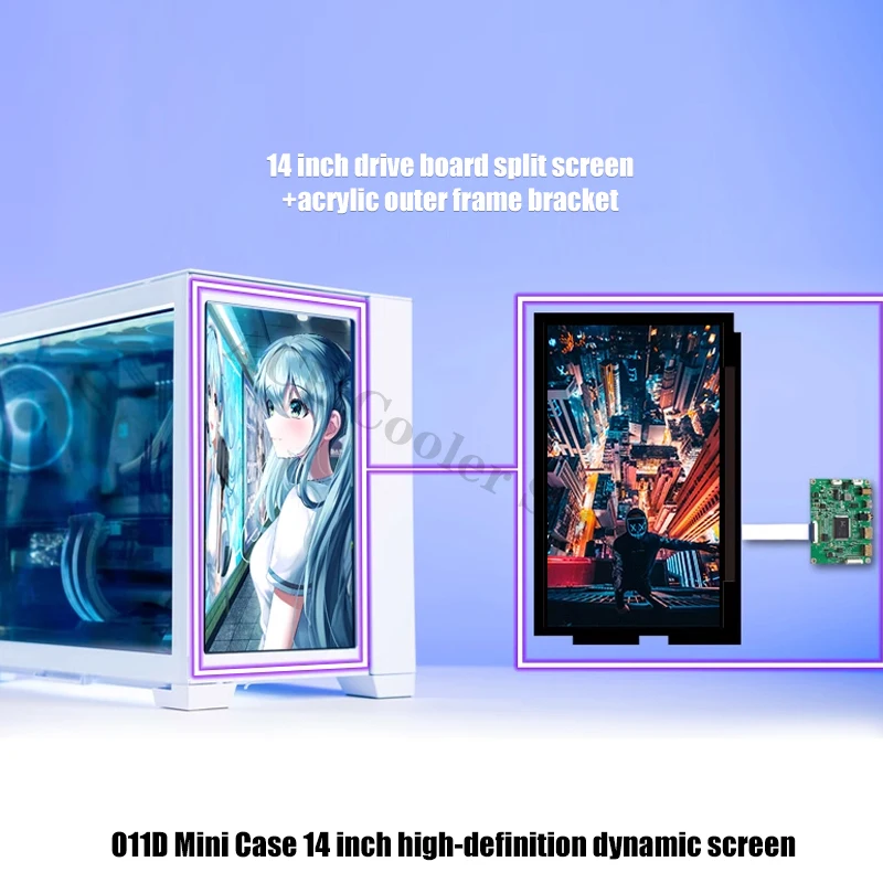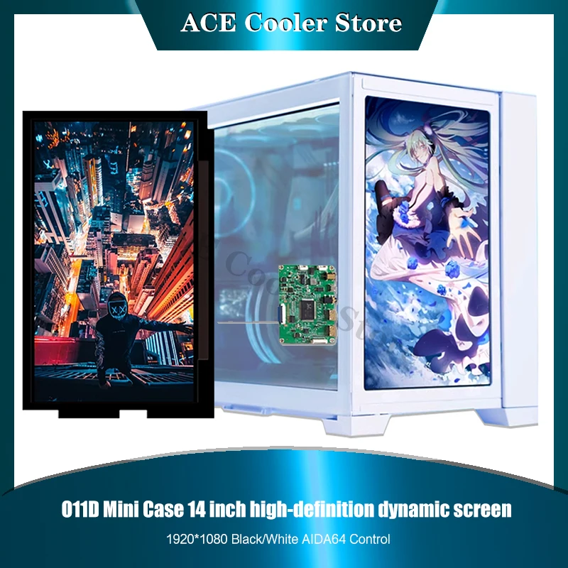 Comprar Mini carcasa O11D para pantalla de repuesto, Panel lateral, Monitor IPS de 1080P, 14 pulgadas, 1920x1080, negro/blanco, Control AIDA64