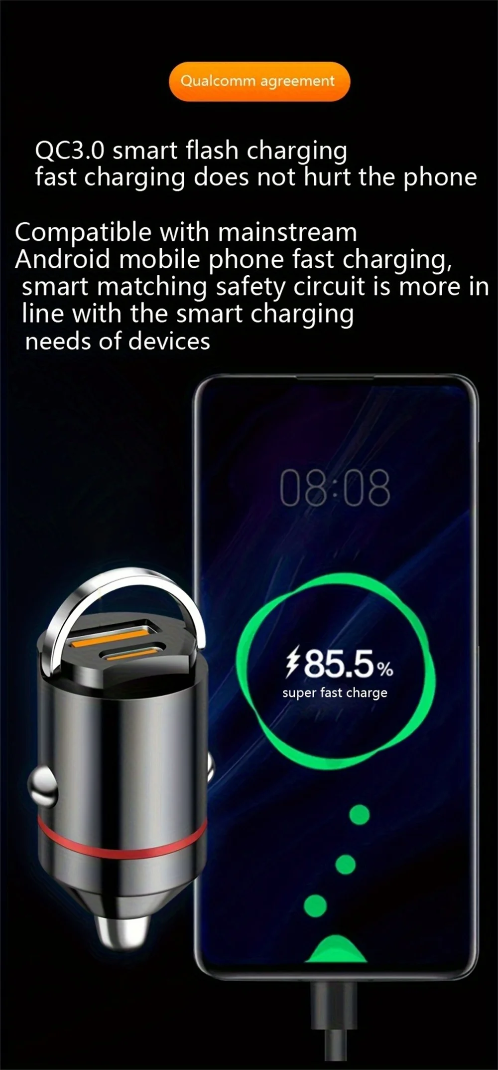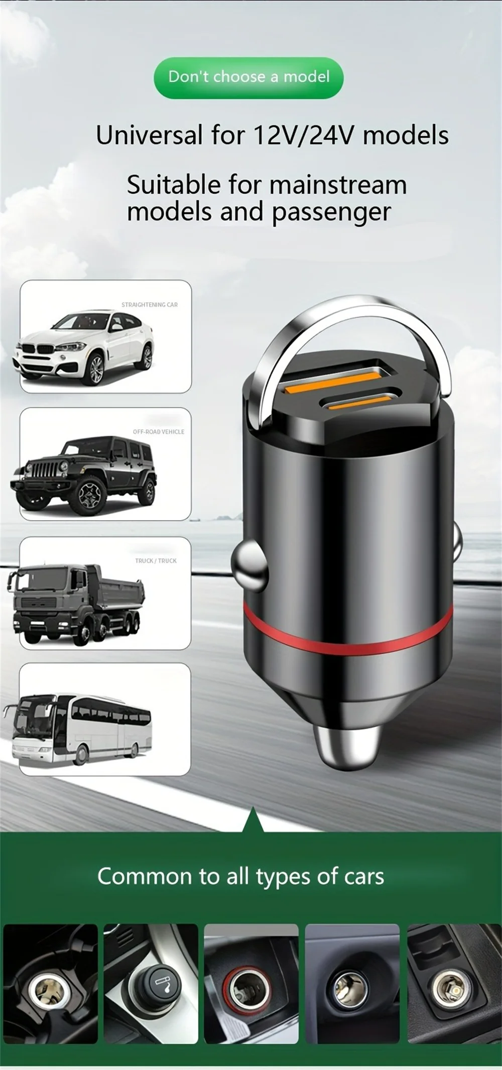 4.Compacto y portátil: el cargador USB para automóvil es pequeño y liviano, fácil de insertar en la toma del cenicero del automóvil y no ocupa demasiado espacio.Muy adecuado para viajes, conducción autónoma de larga distancia.