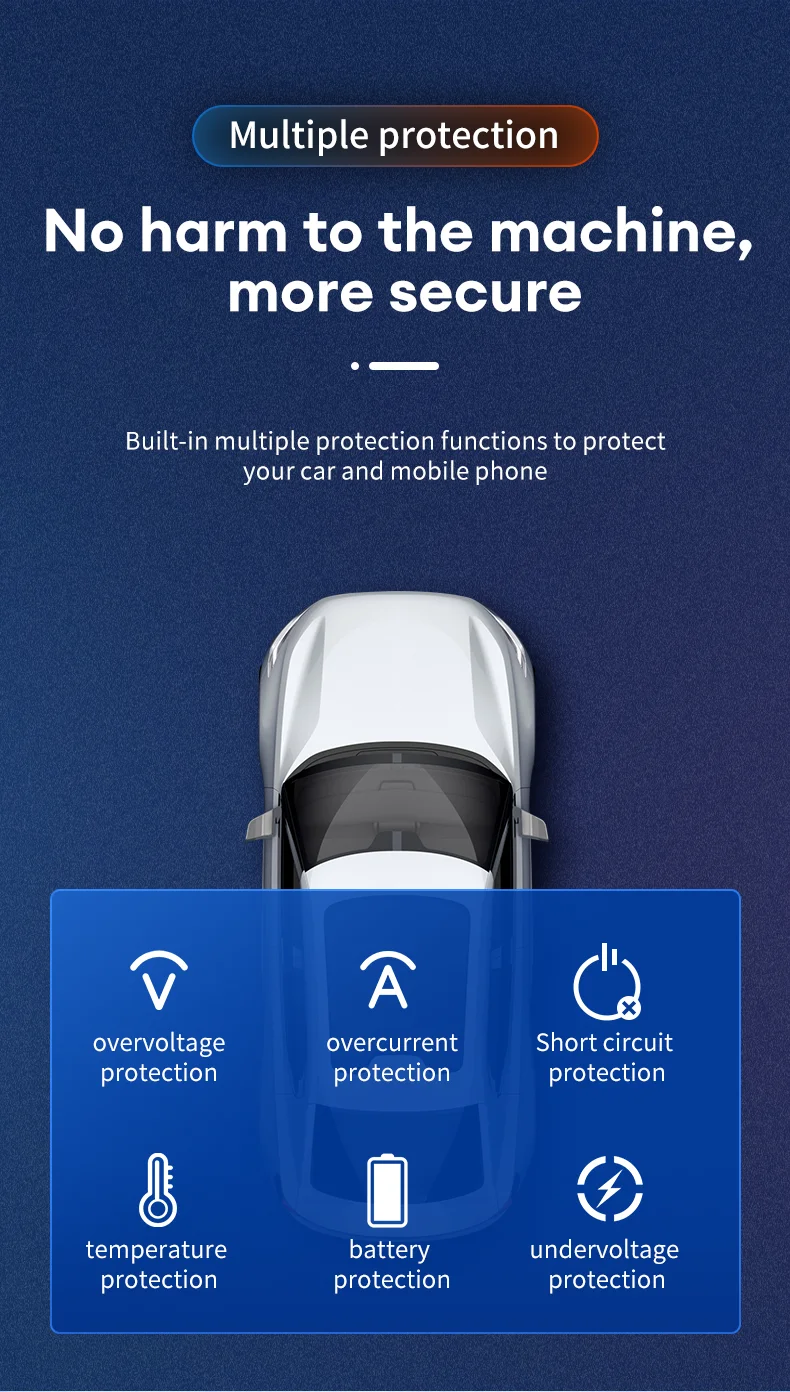 • Puerto de carga dual :Cargue dos dispositivos simultáneamente con la función de puerto dual, ahorrando tiempo y aumentando la comodidad.