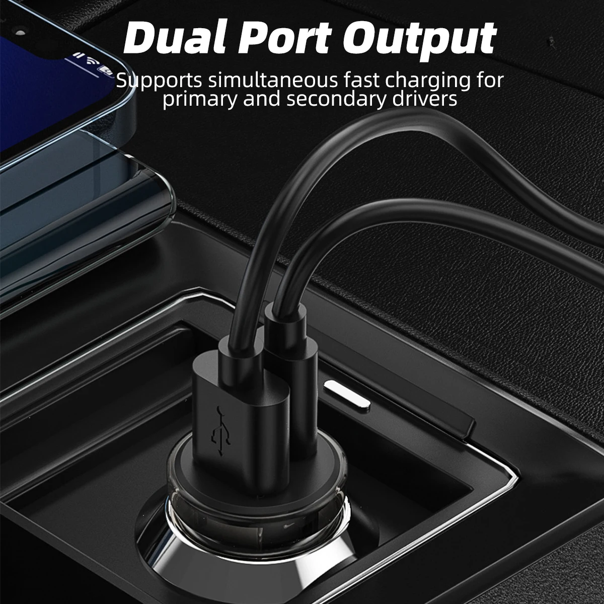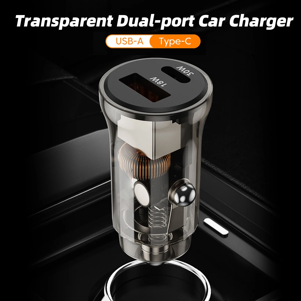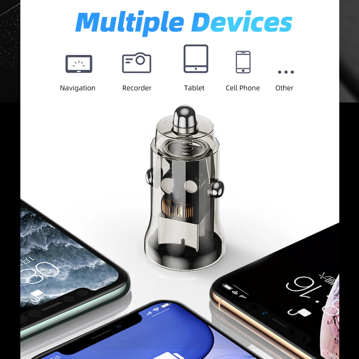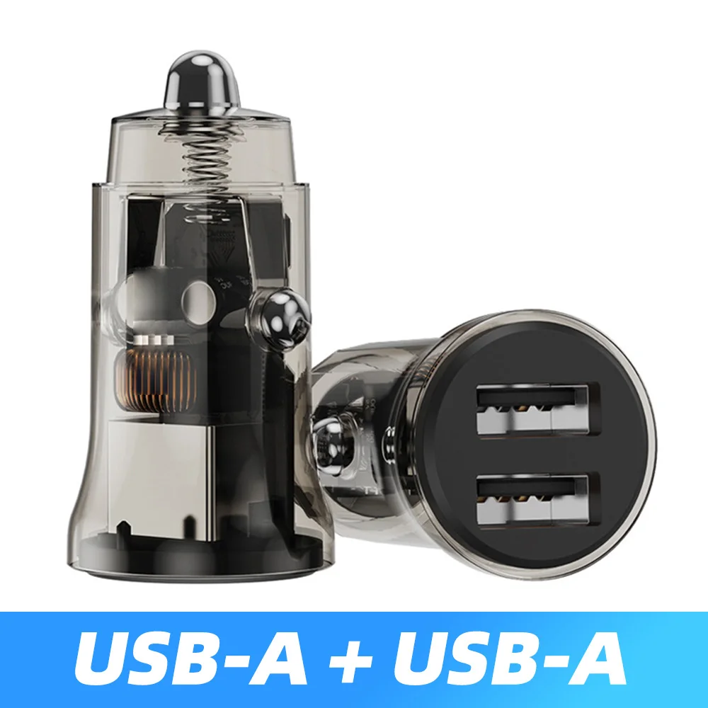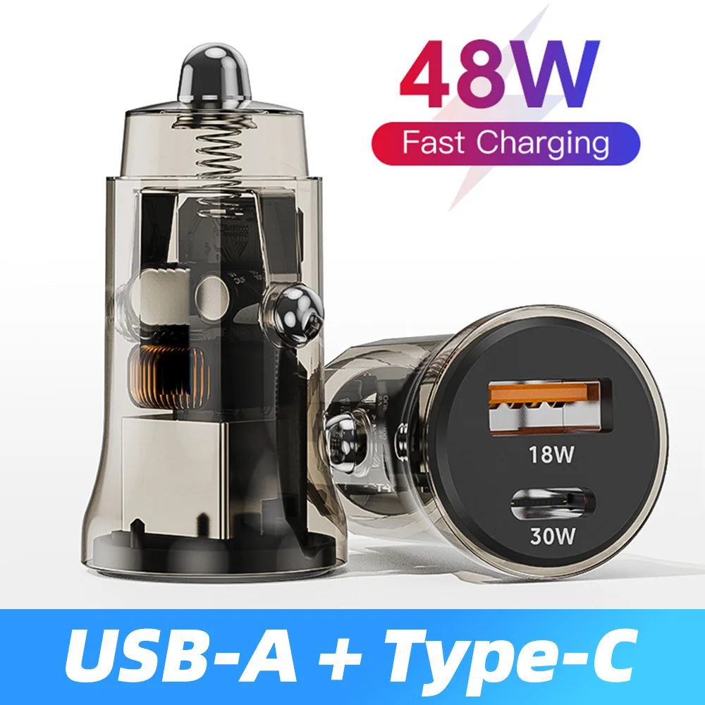 Mini cargador de coche transparente de 48W 5A USB C, cargador de teléfono de coche de carga rápida Dual USB para iPhone 12 13 Pro Xiaomi Huawei Samsung