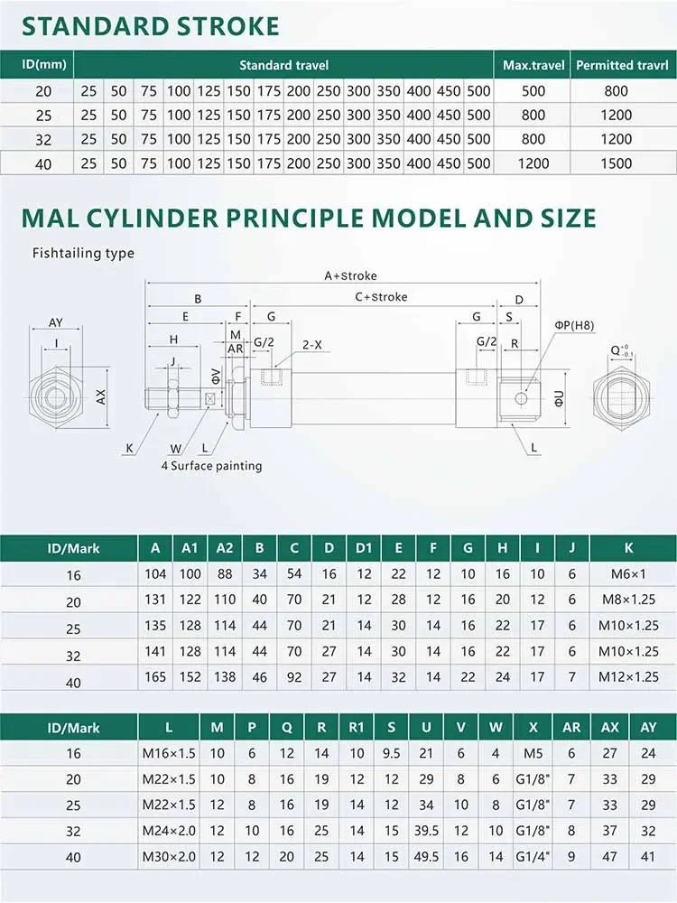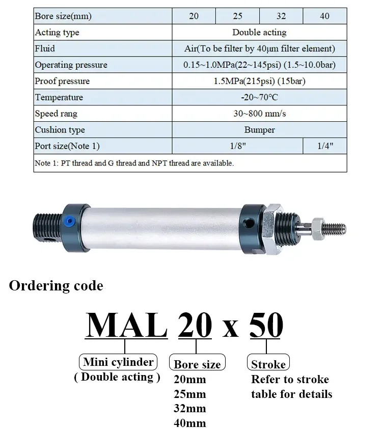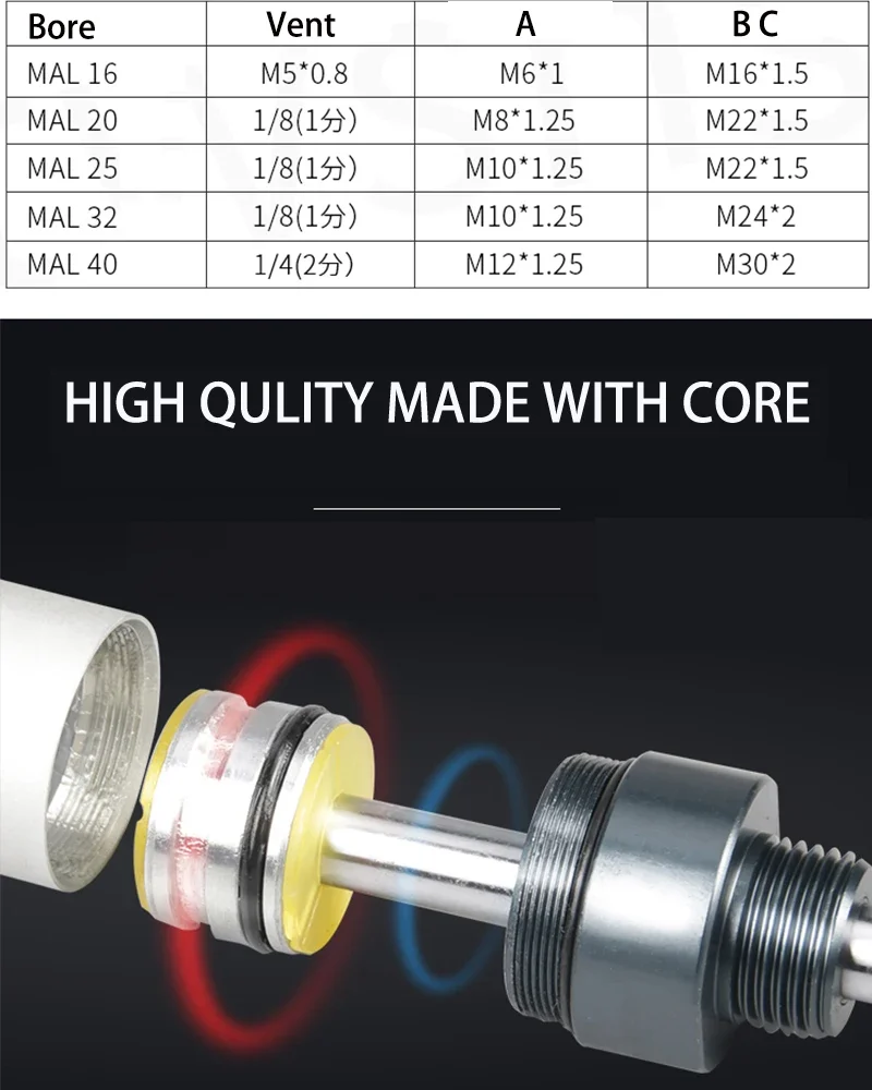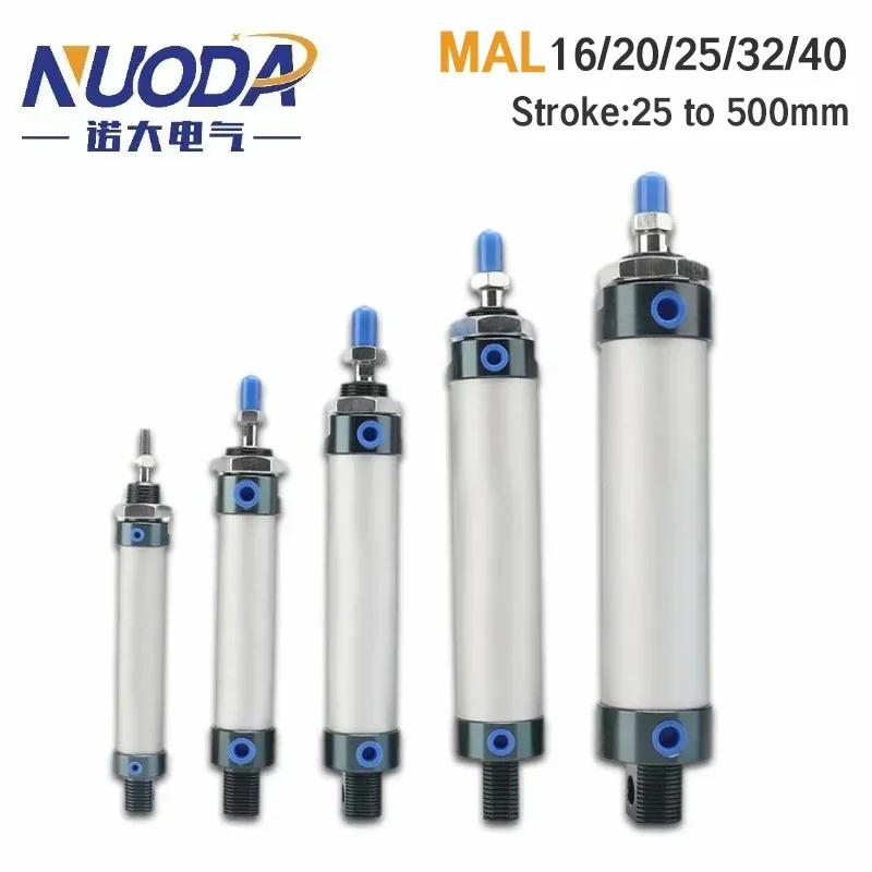 Comprar Mini cilindro neumático MAL 16/20/25/32mm de diámetro 25/50/75/100/200/300/400/500mm de carrera cilindro de aire neumático de una sola palanca
