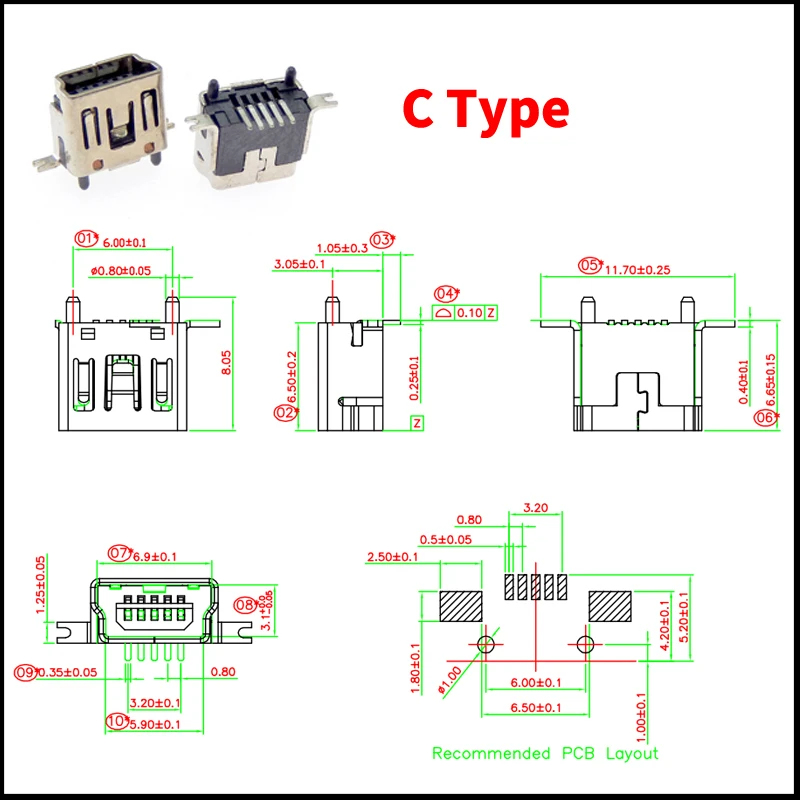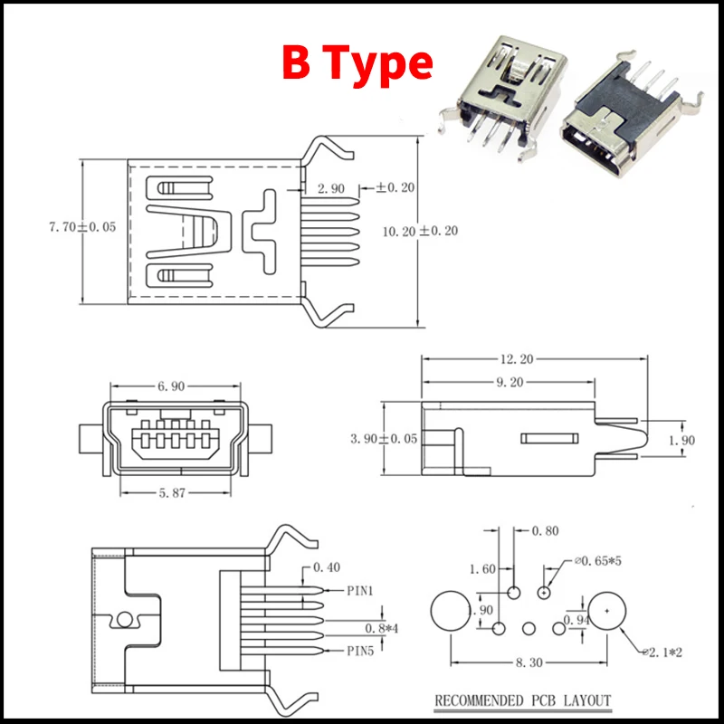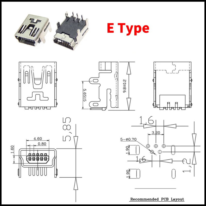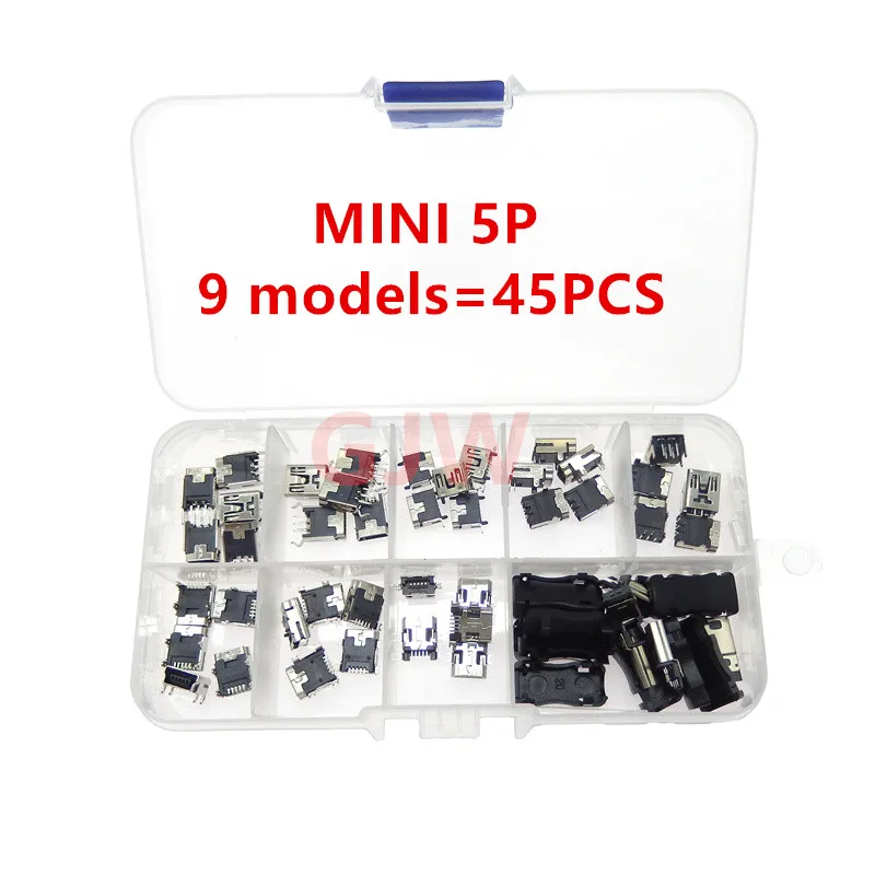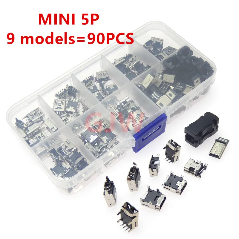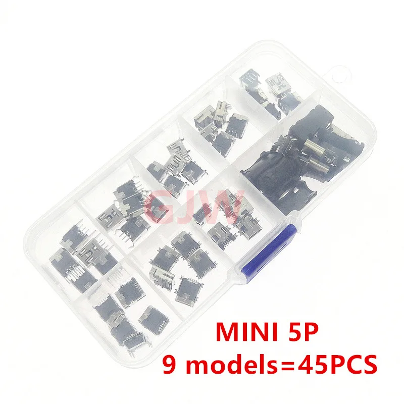 Comprar MINI conector de enchufe USB Vertical, dispositivo de carga de datos, SMD, 5P, 9 modelos, 45/90 piezas