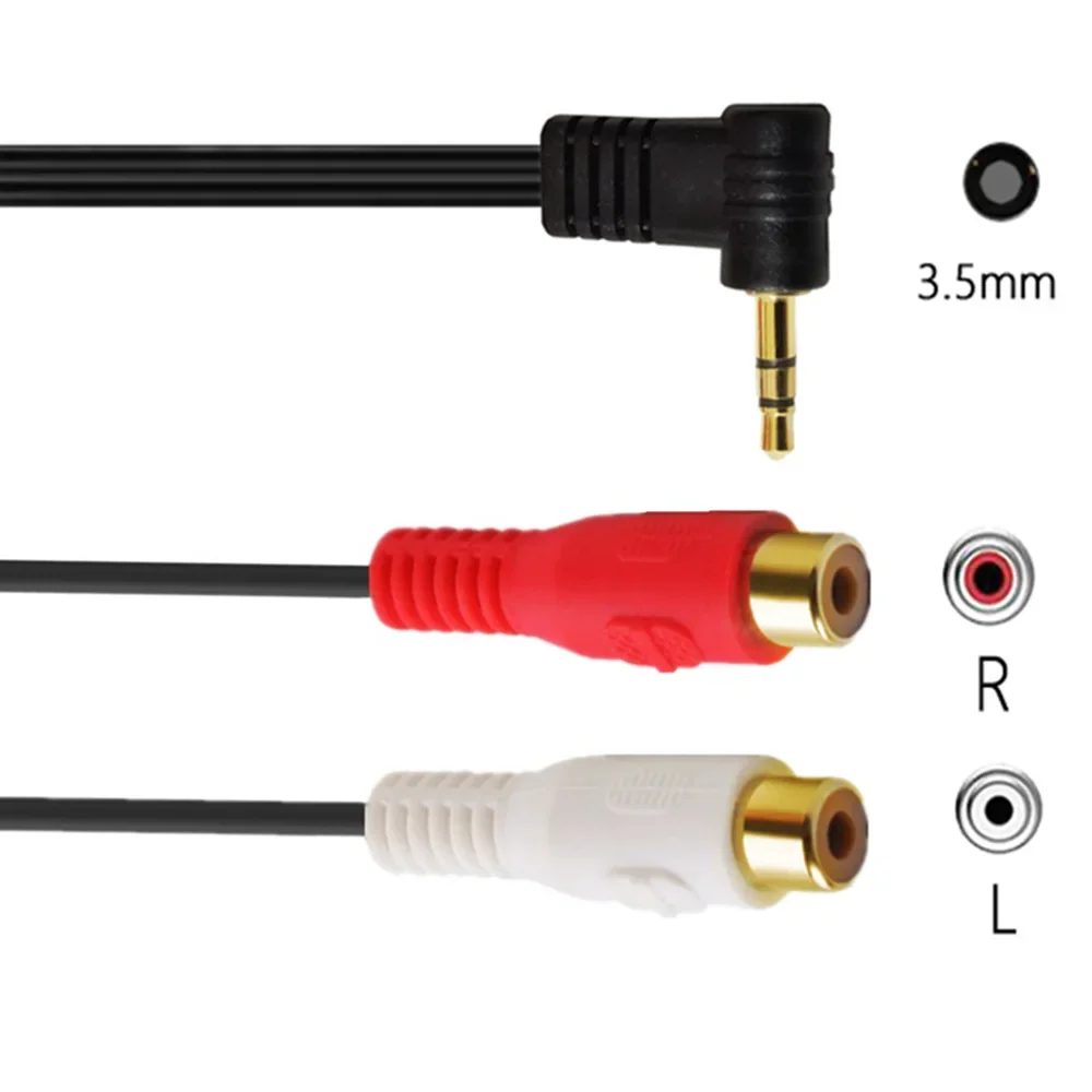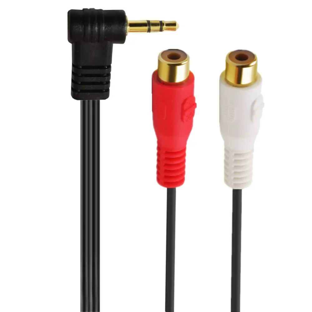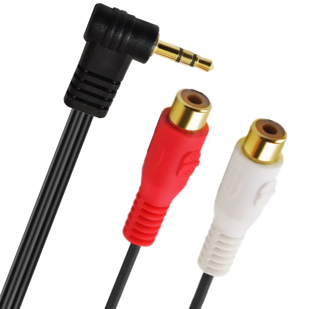 Mini conector estéreo 1/8 dorado de 3,5 mm en ángulo recto de 90 grados, adaptador de Audio RCA macho a 2 hembra (macho a 2 hembra), 0,25 m/1,5 m;