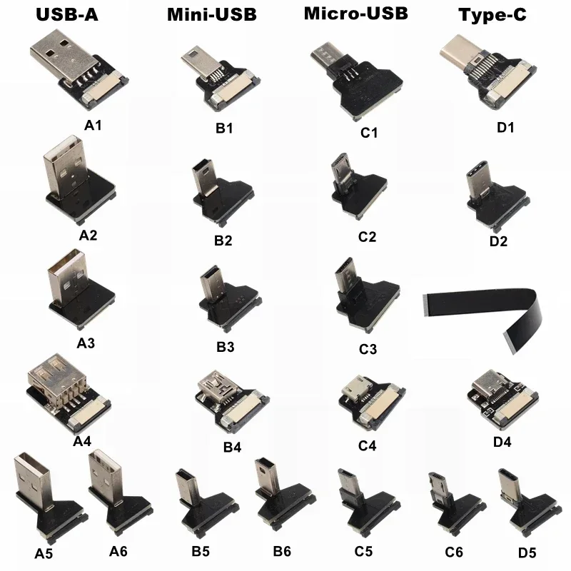 FFC USB Tipo-c cable FPV Accesorios Flat Slim Thin Ribbon FPC Cable Micro USB 90 grados a USB estándar A para cardán FPV