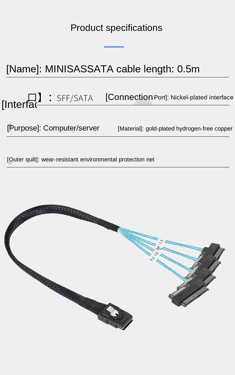 Especificación:Cable mini SAS de 36 Pines de 2 a 4 cables de 1/2"