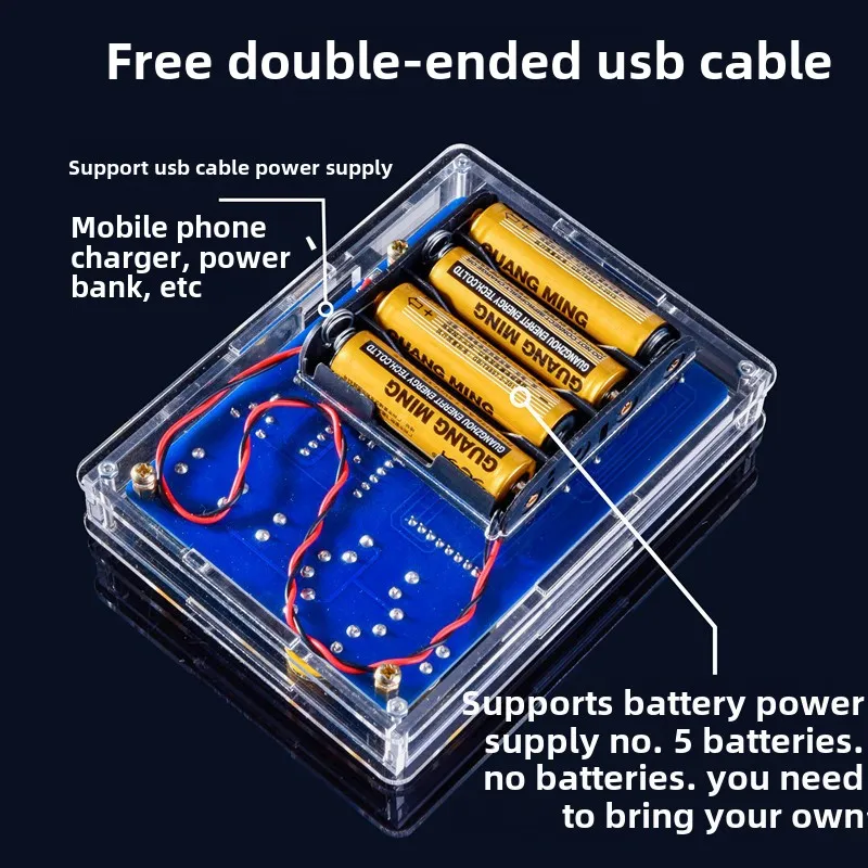 Voltaje de funcionamiento: cargador de teléfono móvil de 5 V, banco de energía, alimentado por 4 No.5 pilas secas (pilas no incluidas en el kit)