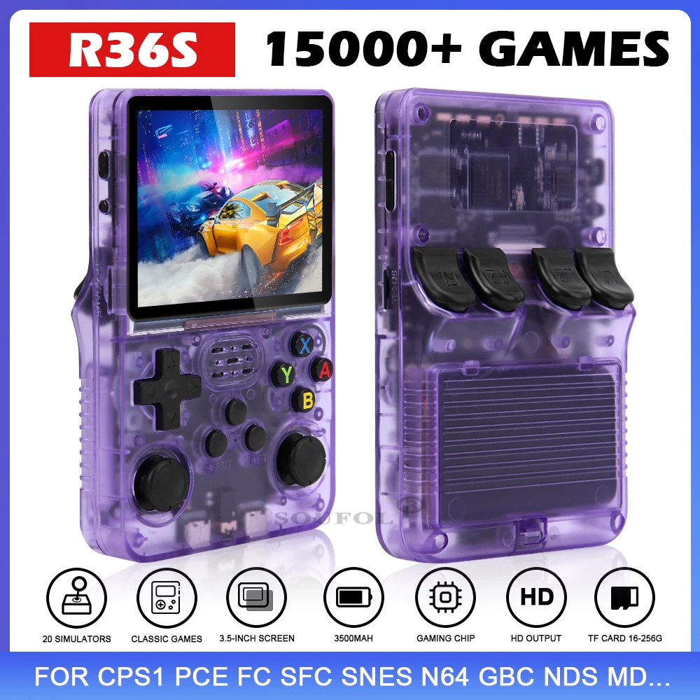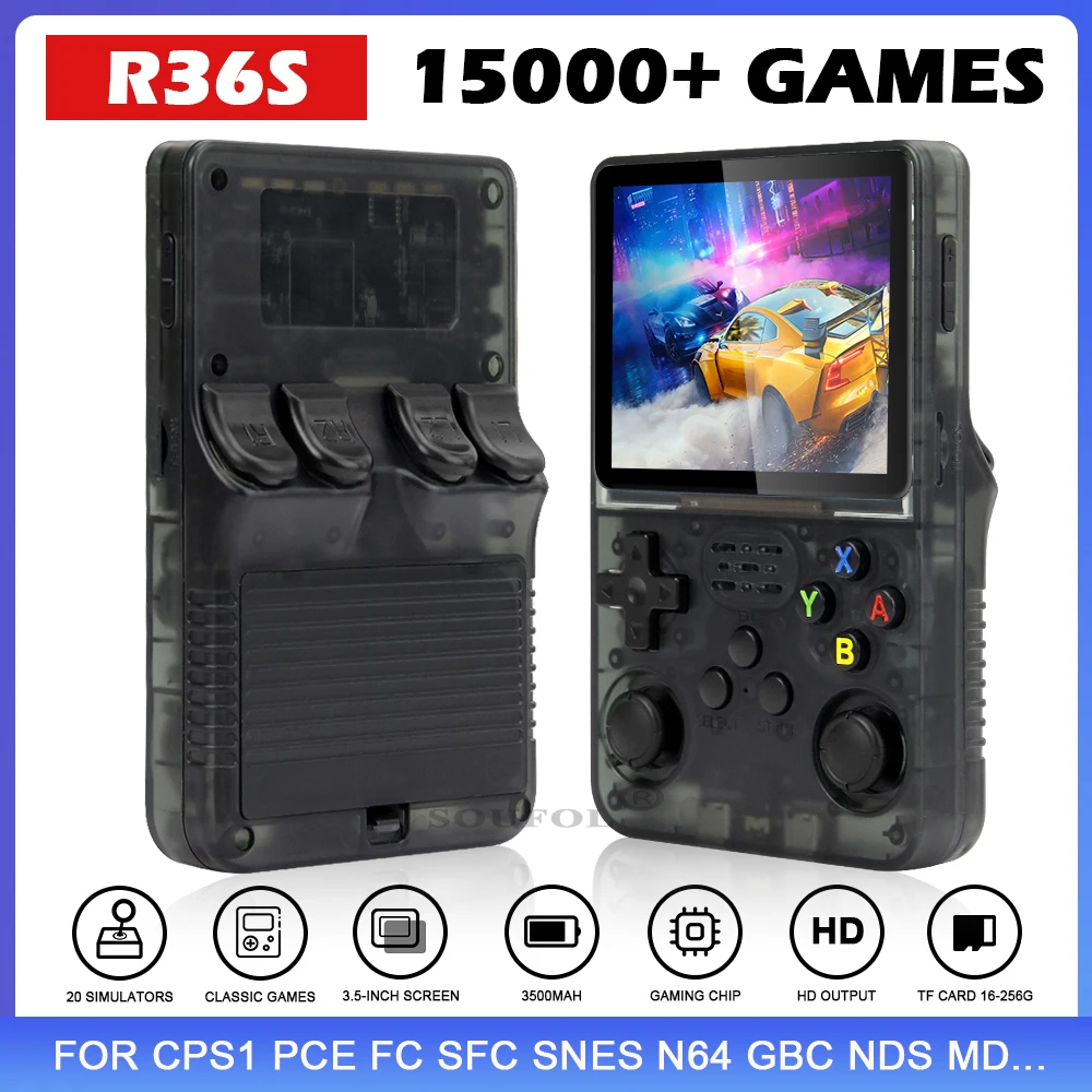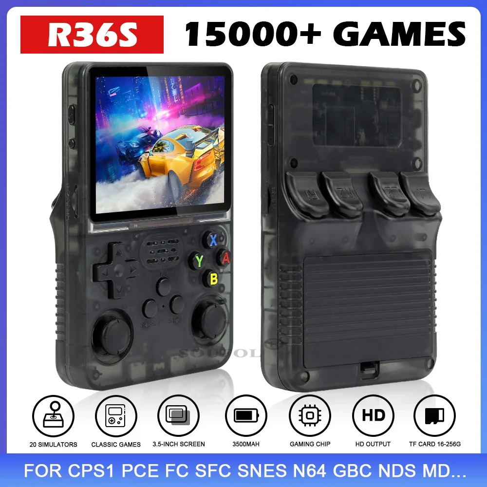 Comprar Mini consola de juegos portátil Retro R36S, emulador de juegos clásico, HD pantalla IPS de 3,5 pulgadas, sistema Linux, regalo para niños