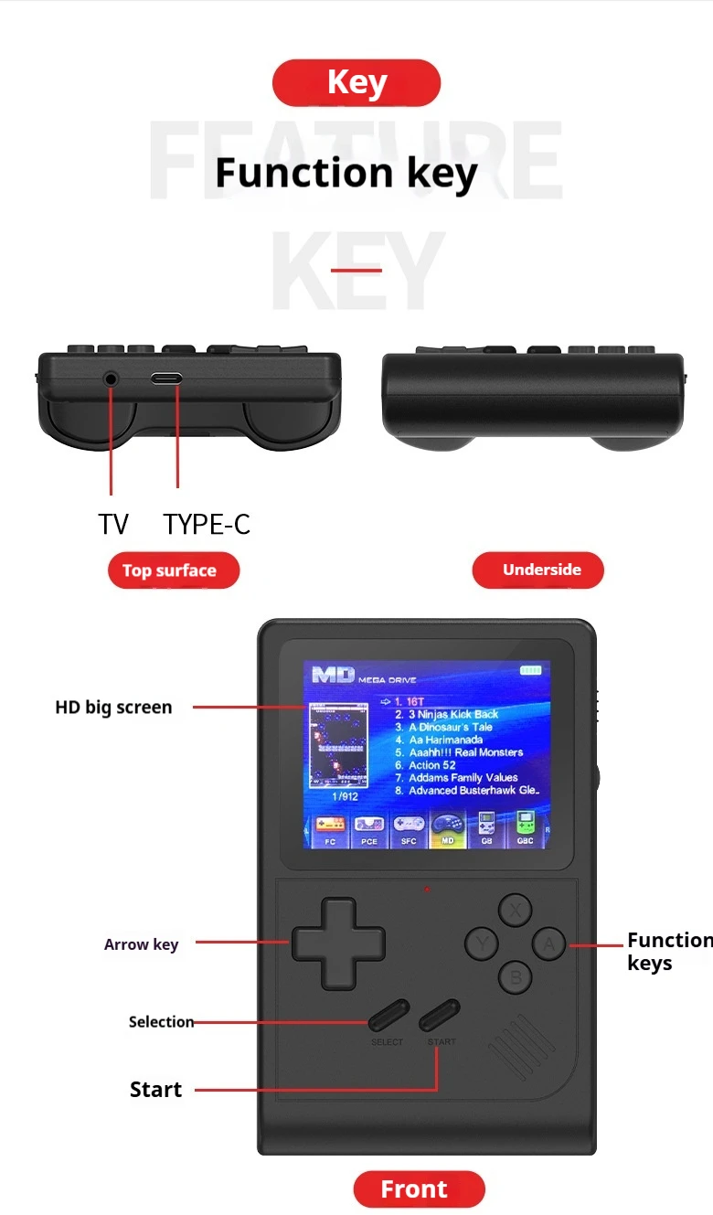 Mini consola de videojuegos portátil Retro, 8 bits, 3,0 pulgadas, HD, LCD en Color, reproductor de juegos en Color para niños, construcción en 6000 juegos