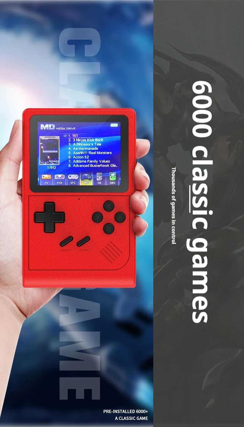 Comprar Mini consola de videojuegos portátil Retro, 8 bits, 3,0 pulgadas, HD, LCD en Color, reproductor de juegos en Color para niños, construcción en 6000 juegos