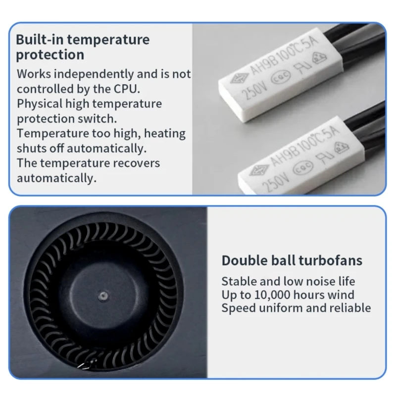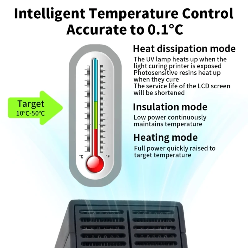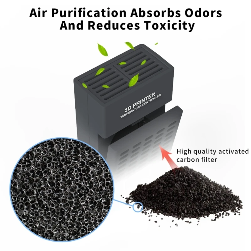Con control de temperatura inteligente con precisión de 0,1℃, este dispositivo no solo purifica el aire absorbiendo los olores sino que también reduce la toxicidad, garantizando espacios de trabajo de impresión 3D seguros y más cómodos.
