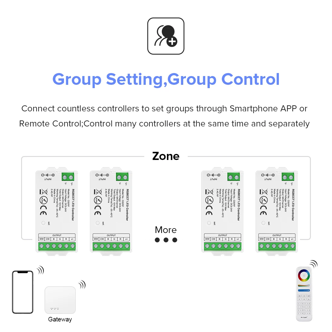 Comprar Mini controlador de tira de luz LED de 2,4 GHz para 2 pines DIM 3pin CCT 4pin RGB 5pin RGBW RGBCW 6pin RGBCCT 2835 5050 FCOB cinta LED 5V-24V