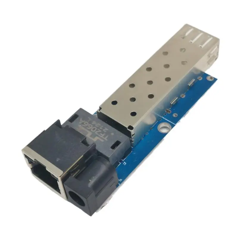 Interfaz UTP de 10/100/1000M (TX) y enchufe SFP de 1000M (FX). Según los requisitos de los clientes, este convertidor de medios admite fibras monomodo y multimodo con una distancia de transmisión de hasta 80 km para fibra monomodo y 550 m para fibra multimodo. Amplía la distancia de transmisión a través de su red de conversión fotoeléctrica. El convertidor de medios aprovecha la tecnología de conexión inteligente para proporcionar negociación automática, eliminando así la necesidad de configurar manualmente o monitorear la configuración.