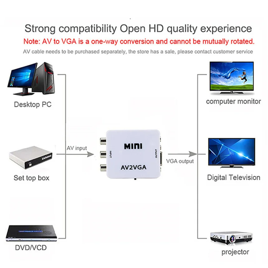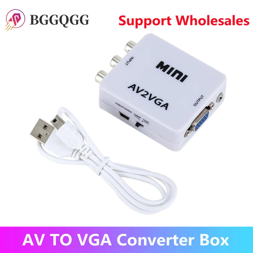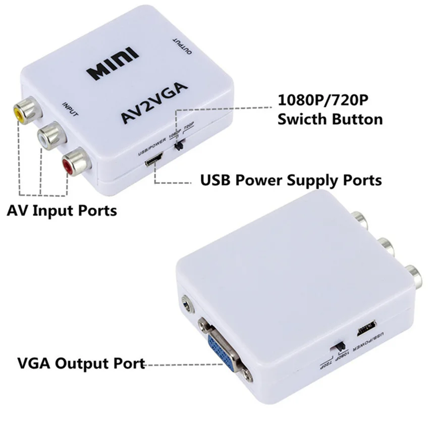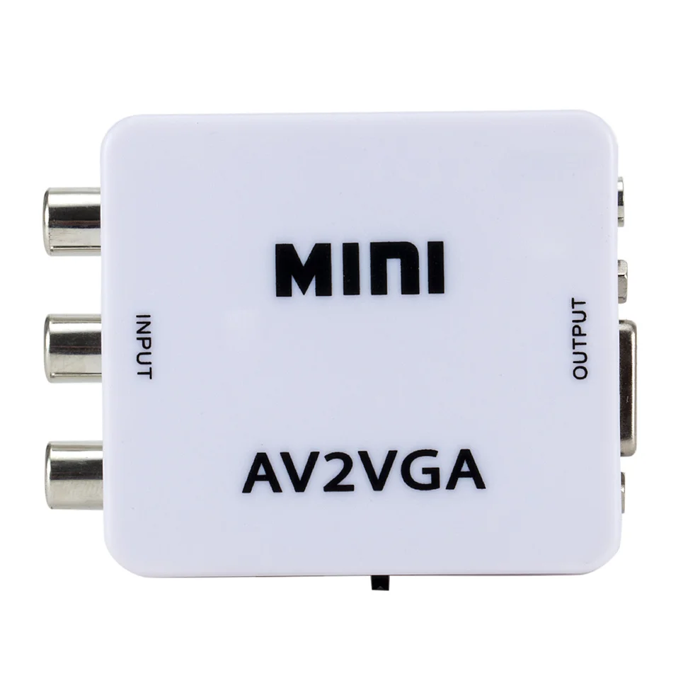 Comprar Mini convertidor de vídeo 1080P, convertidor de vídeo RCA AV a VGA con Audio de 3,5mm AV2VGA/CVBS + convertidor de Audio a PC HDTV