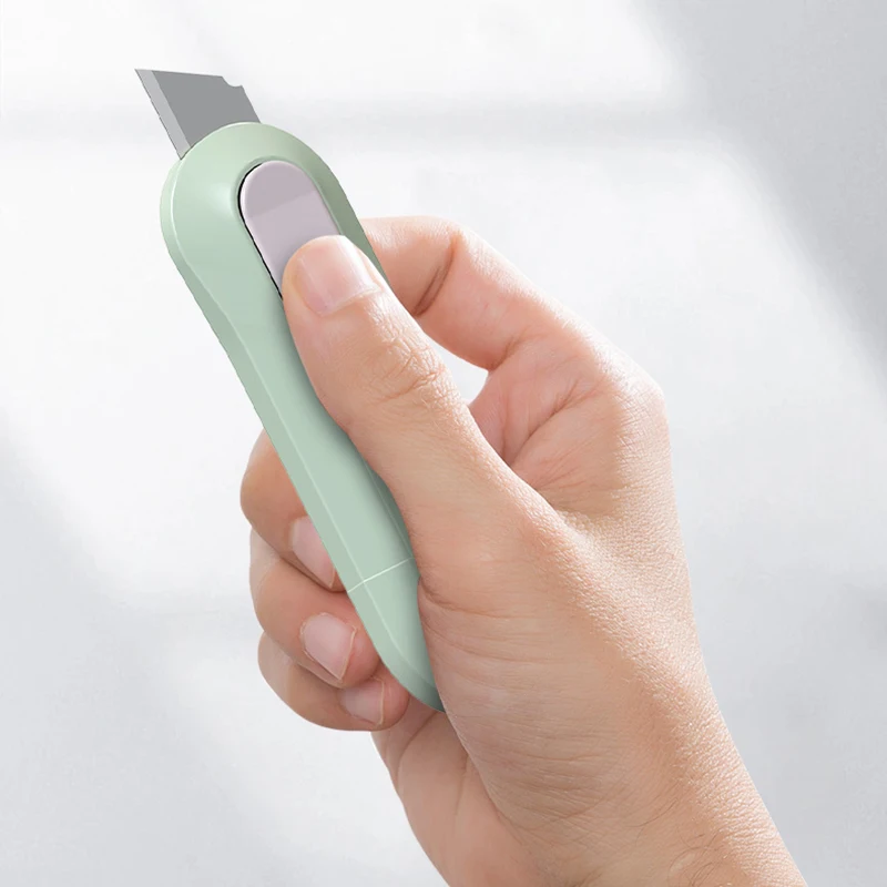Mini cortador de papel portátil, cuchillo de obra de arte de calidad, abridor de caja de rebote automático, cortador de bolsillo para oficina, escuela y suministros para el hogar