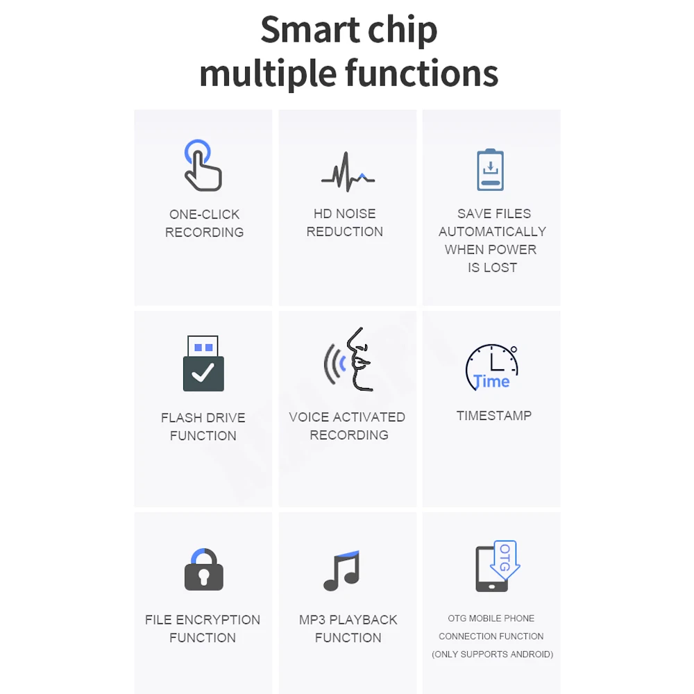 Chip inteligente multifuncional con reducción de ruido por clic. Guarda automáticamente los archivos en la unidad perstflash de arranque la función de cifrado digital permite la función de reproducción