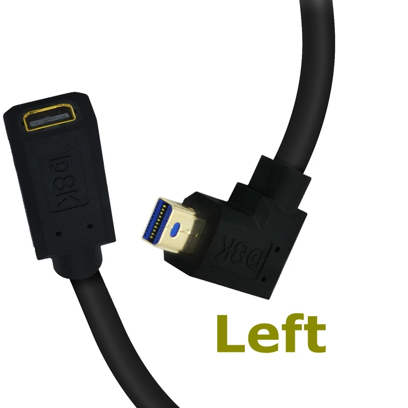 Comprar Mini DisplayPor Revolution Mini DP hembra con agujero de tornillo fijo, Cable de extensión de prueba, 8K @ 60HZ / 4K @ 144HZ / 2K @ 165Hz codo