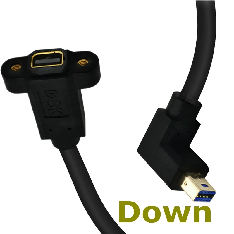 8K 1,4 V 90 ° ángulo arriba/abajo mini DisplayPort macho a mini DisplayPort hembra montaje en panel Cable de extensión 0,3 m