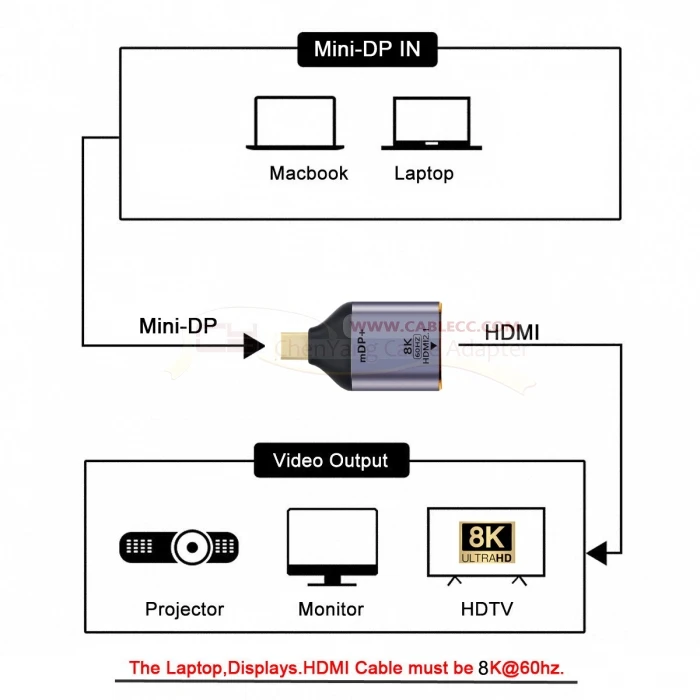 El adaptador DP x HDMI admite 8K @ 60Hz, 4K @ 60Hz para Mini DisplayPort
