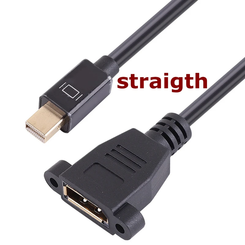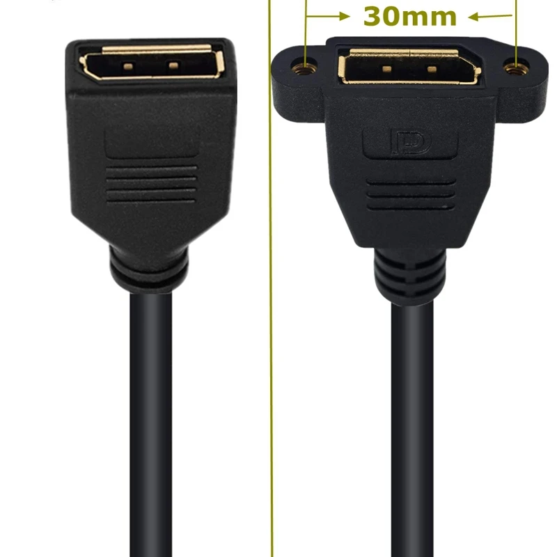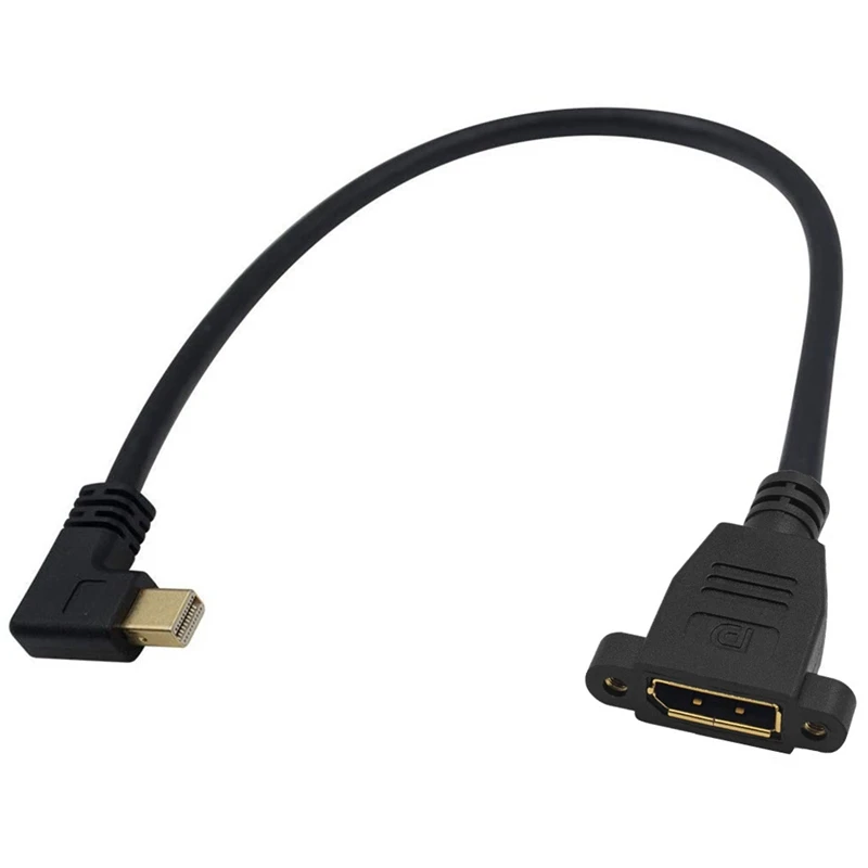 Displayport macho a hembra mini codo DP chapado en oro con pantalla adaptadora de alta definición bloqueable de doble orificio