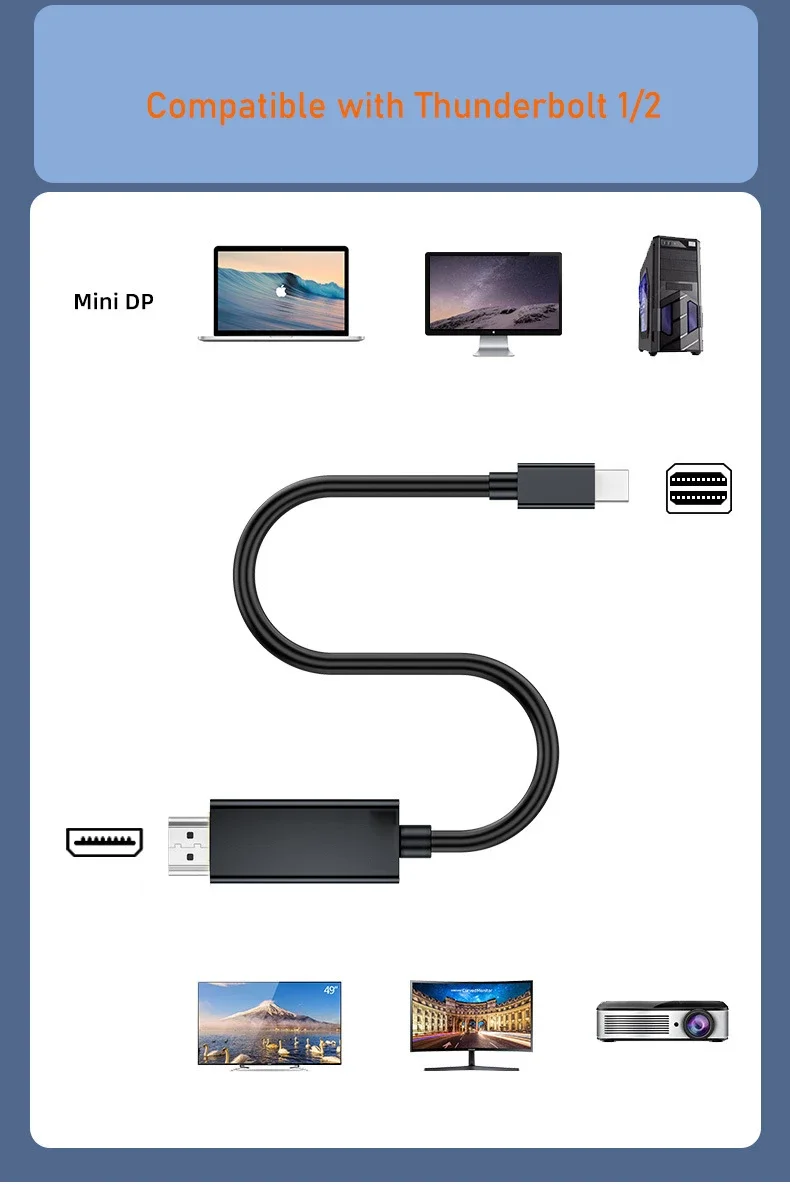 Amplia compatibilidad con MacBooks, PC y tabletas con salida de vídeo Mini DisplayPort y pantallas habilitadas para HDMI de alta resolución