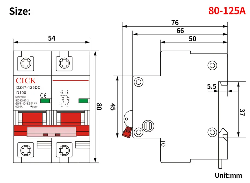 Comprar Mini disyuntor Solar DZ47 DC 500V-1000V 2P MCB, interruptor de circuito fotovoltaico de sobrecarga 10A 25A 63A 100A 125A para sistema PV