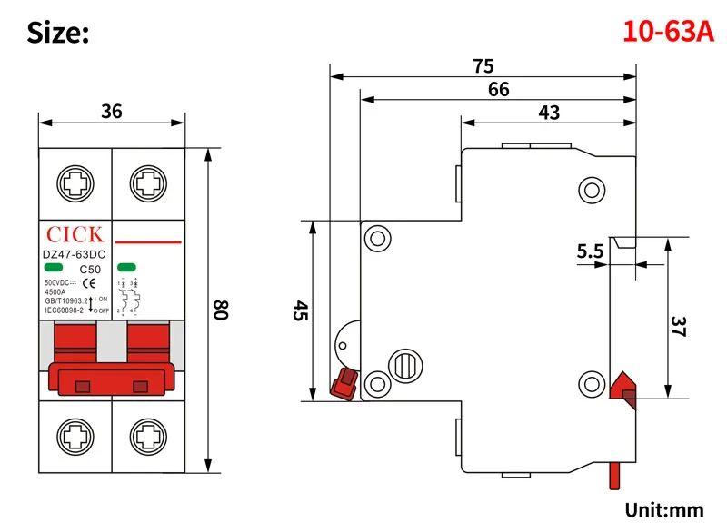 Capacidad de fabricación y rotura: 6000A(6 ~ 40A),4500A(50,63A)