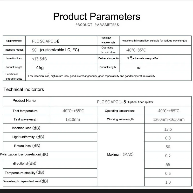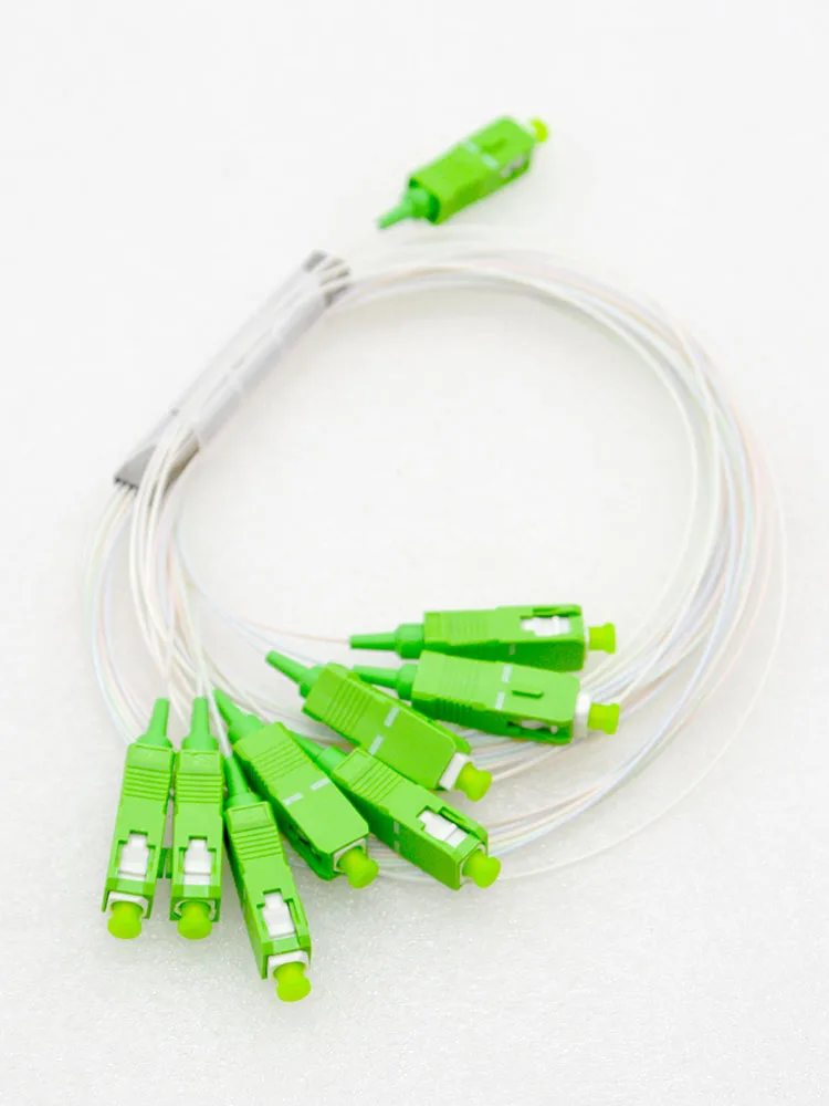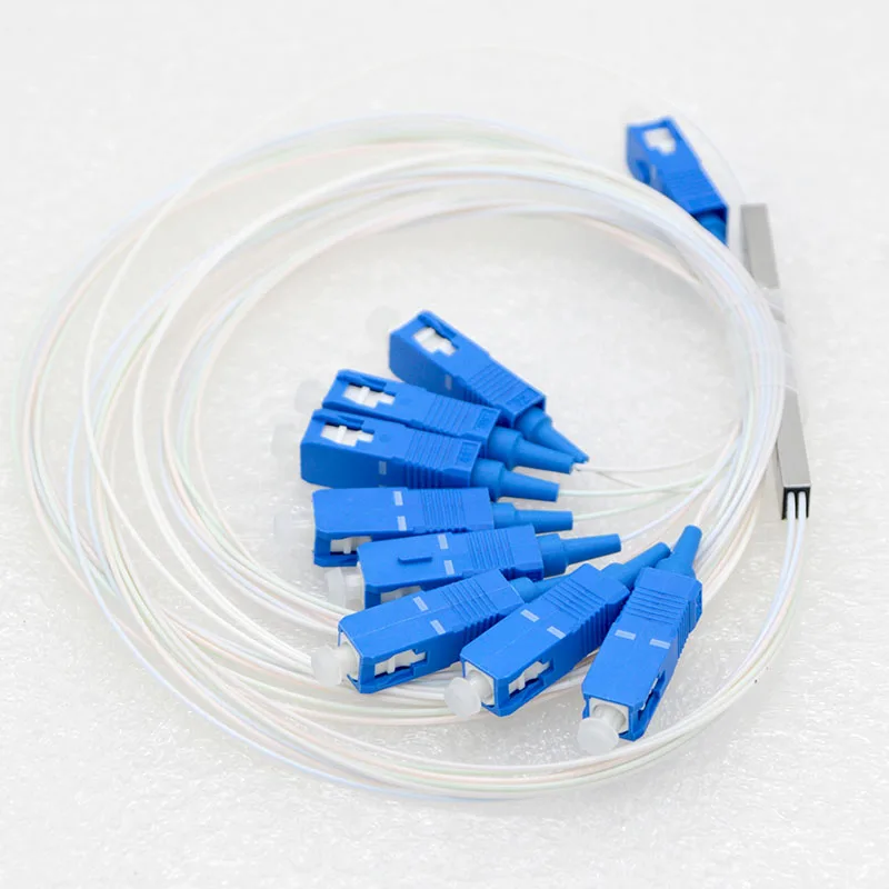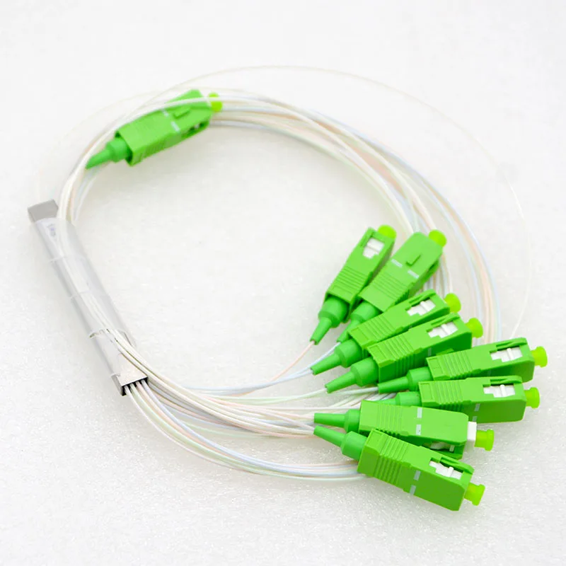 Conector de fibra óptica, divisor PLC, divisor de 1 punto 8 fibra, prueba de tubo de acero mini SC, arnés de fibra desnuda diferencial de 0,9mm,