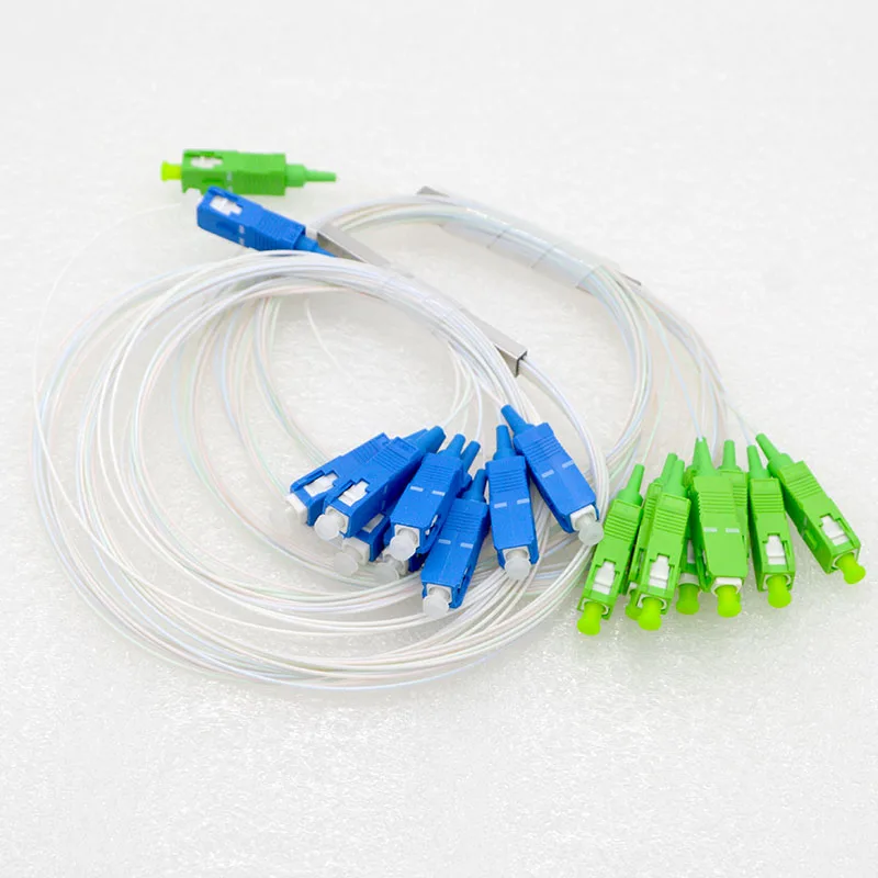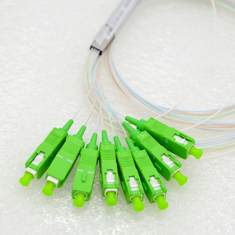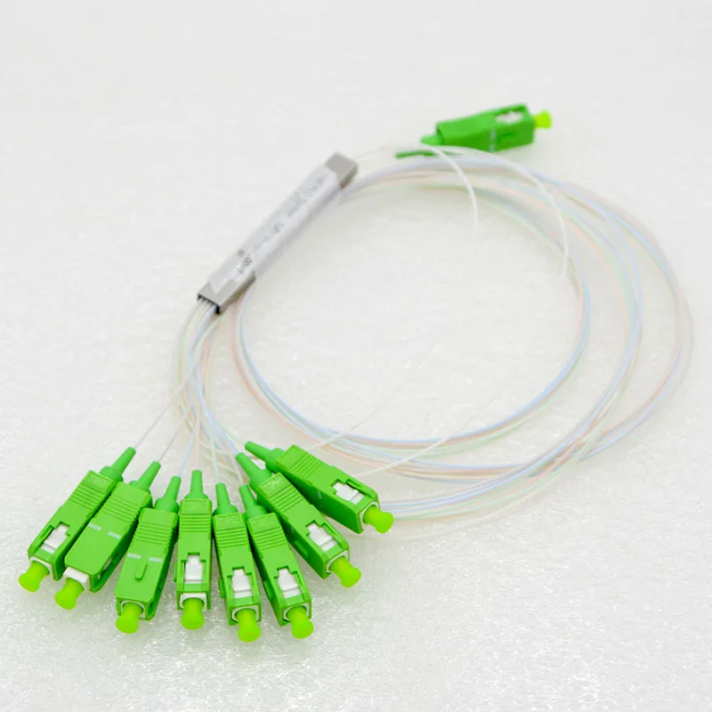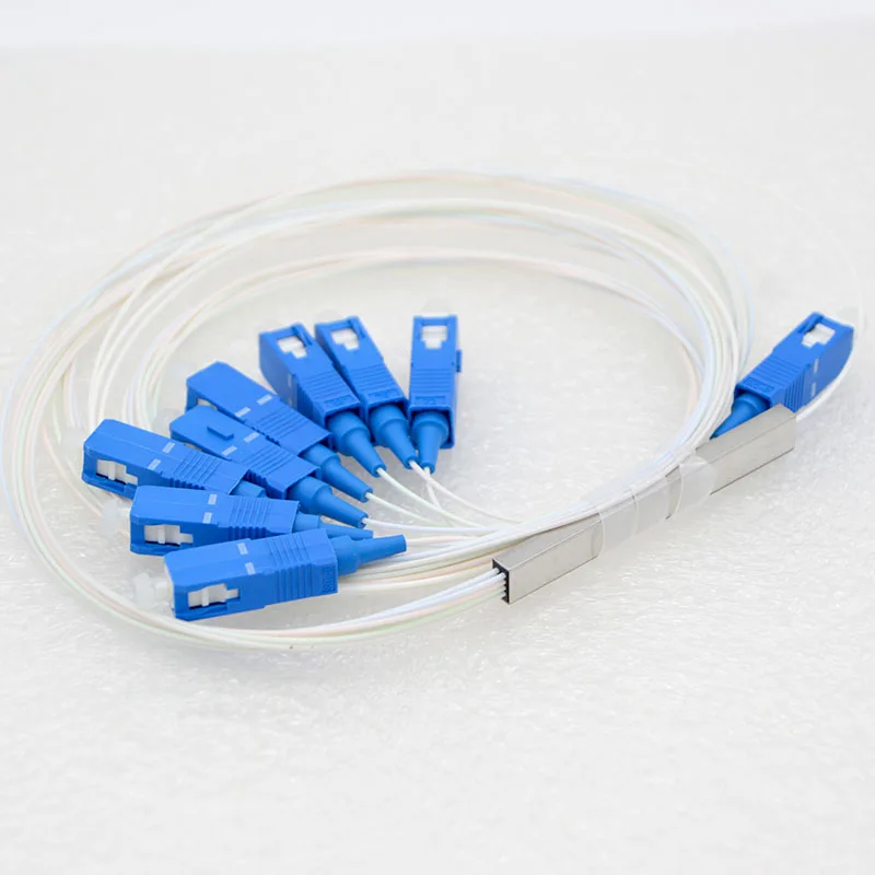 Conector de fibra óptica, divisor PLC, divisor de 1 punto 8 fibra, prueba de tubo de acero mini SC, arnés de fibra desnuda diferencial de 0,9mm,
