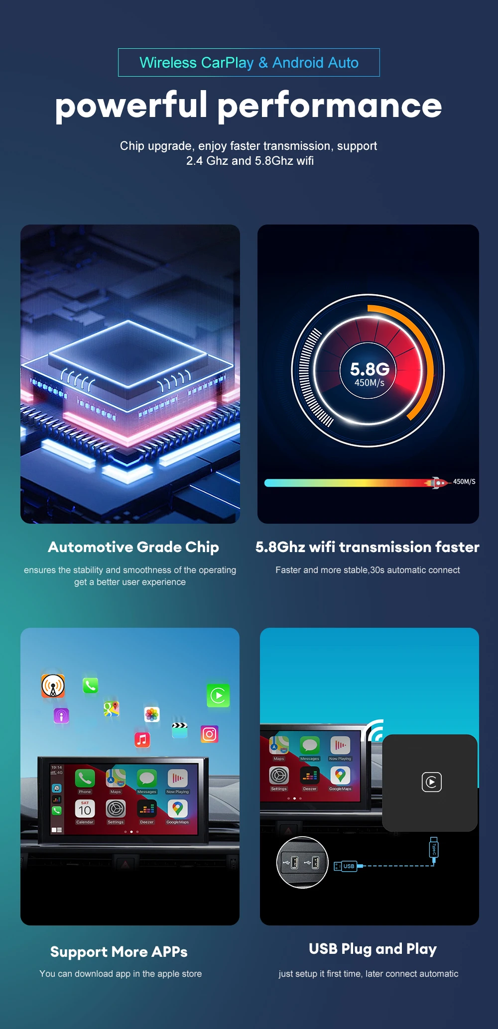 🌼🌼Si su coche es compatible con carplay con cable, pero desea utilizar carplay inalámbrico, este producto es una gran opción para usted.