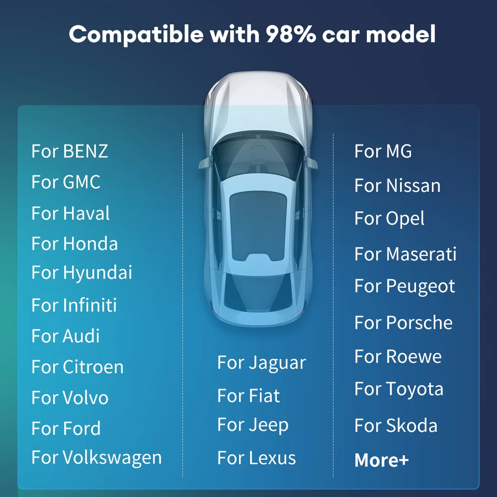 • Compatibilidad con múltiples marcas de automóviles:El Mini Carplay & Auto Box Dongle es compatible con una amplia gama de marcas de automóviles, incluyendo Audi, Toyota, Mazda, Nissan, Chevrolet, Suzuki, Subaru, Kia, Ford, Opel, Skoda, Y Hyundai.