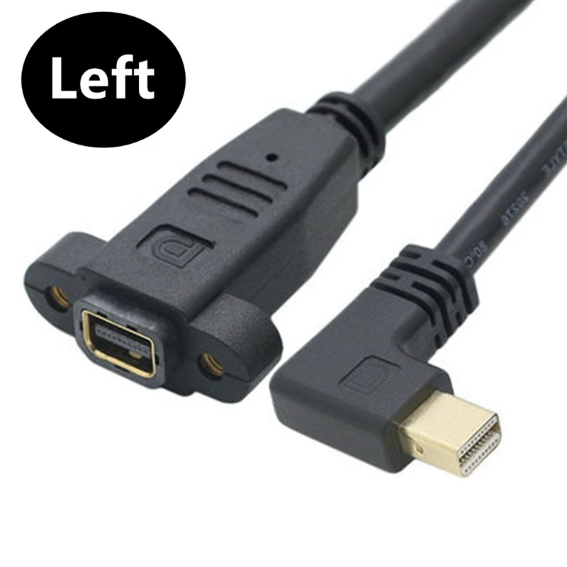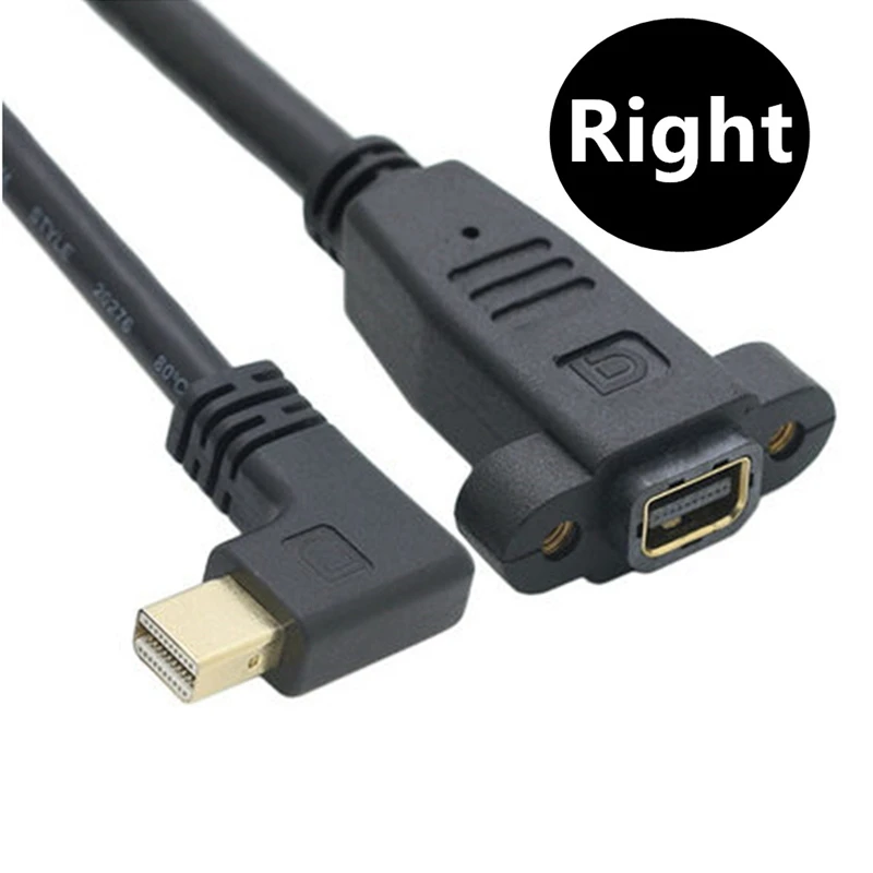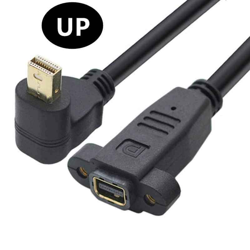 Comprar Mini DP Apple ordenador Mini DisplayPor macho con tornillo fijo, ángulo de 90 ° hacia arriba y hacia abajo, Cable de extensión de prueba, codo chapado en oro, 0,3 m