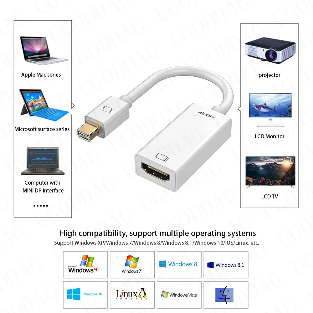 Comprar Mini DP Thunderbolt DisplayPort a HDMI, convertidor adaptador Compatible para MacBook Microsoft Surface, portátil, Monitor de TV, proyector