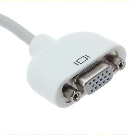 Línea de conversión Mini DVI a VGA, diseñada para el dispositivo de interfaz de salida de video MACBOOK y PowerBook, con el que la nueva interfaz mini DVI se puede enviar directamente a dispositivos de visualización externos como pantallas y proyectores con interfaz VGA. Esto permite que los dispositivos de visualización externos extiendan su escritorio o muestren su escritorio sincrónicamente.